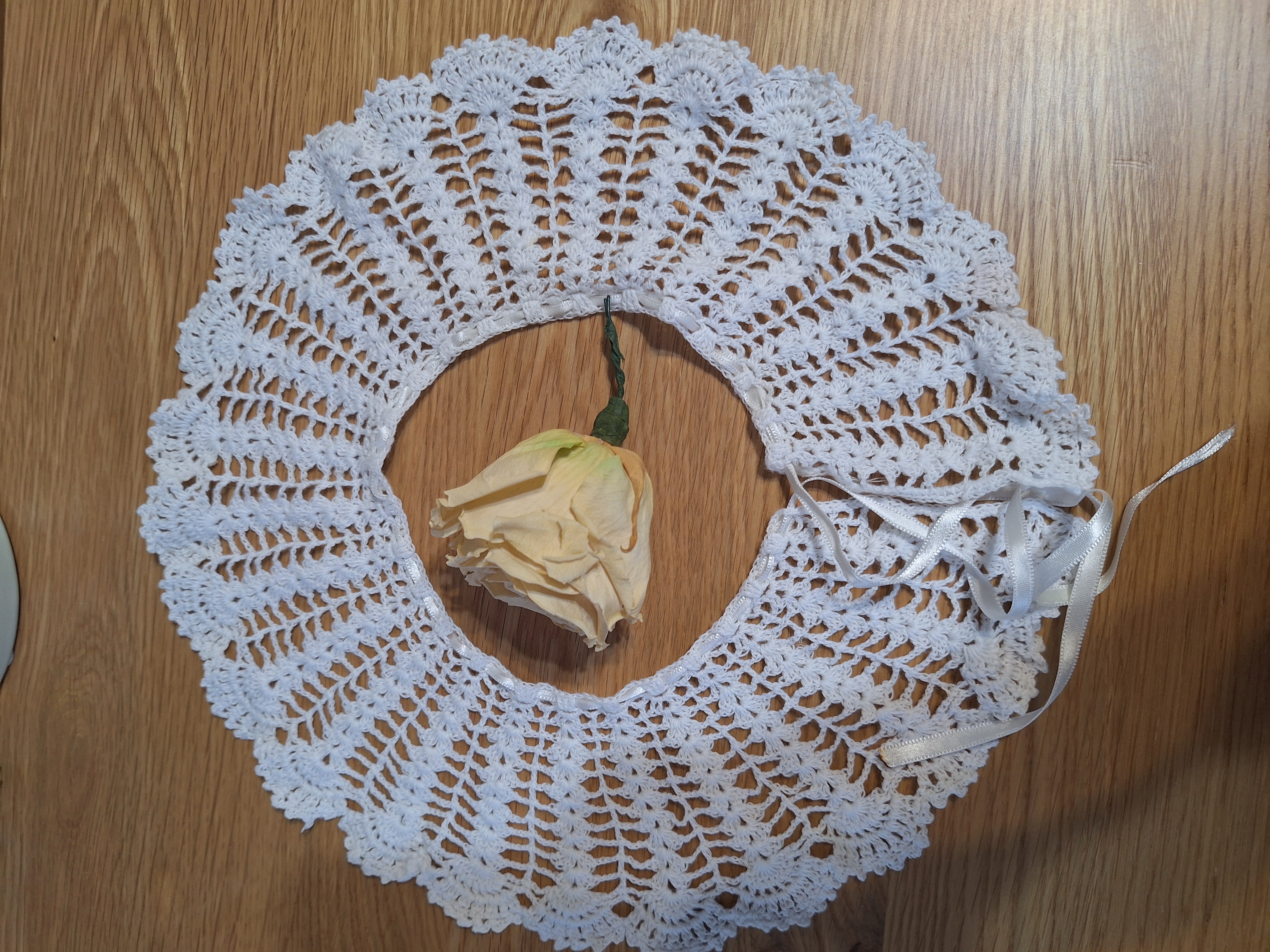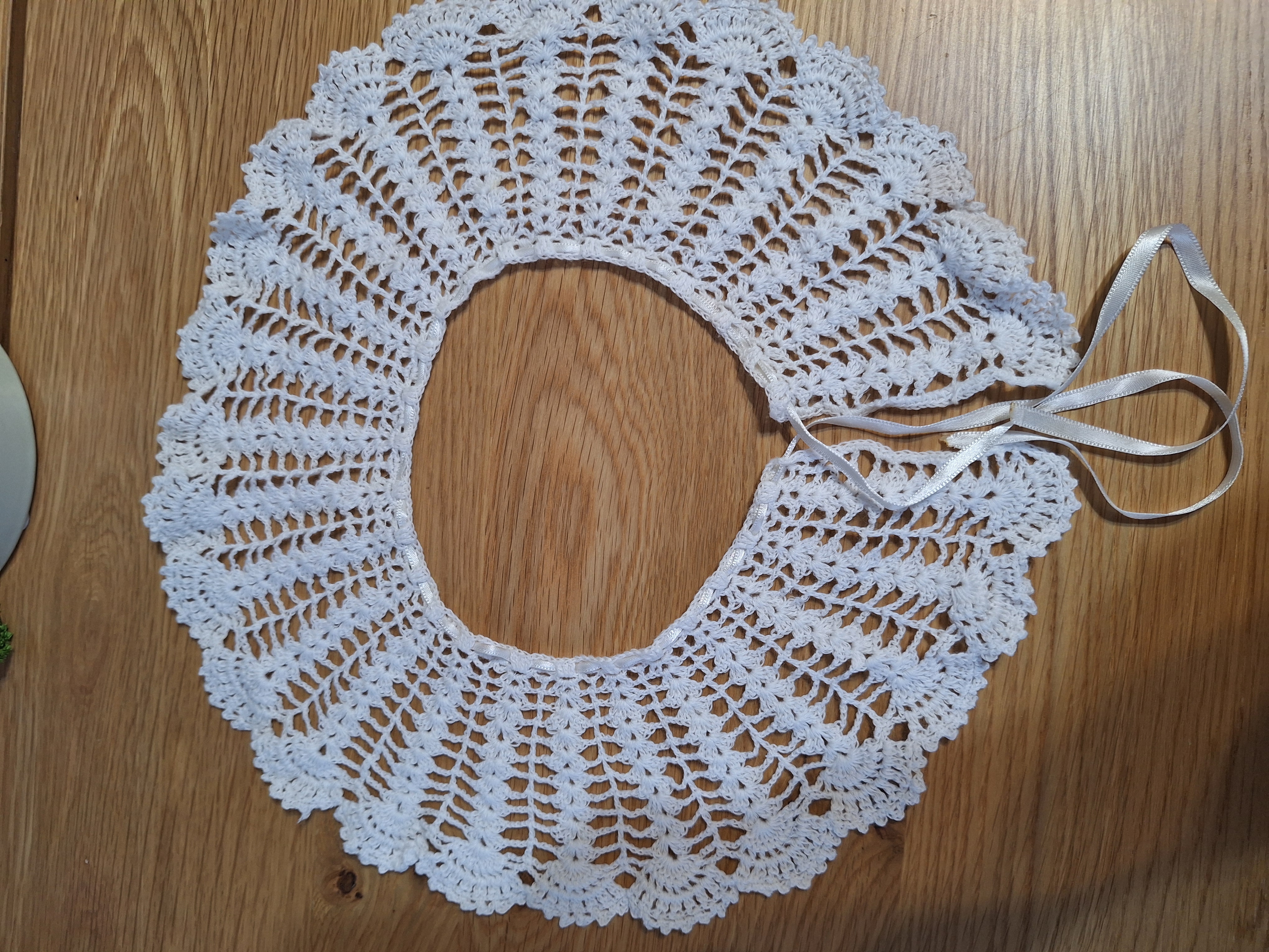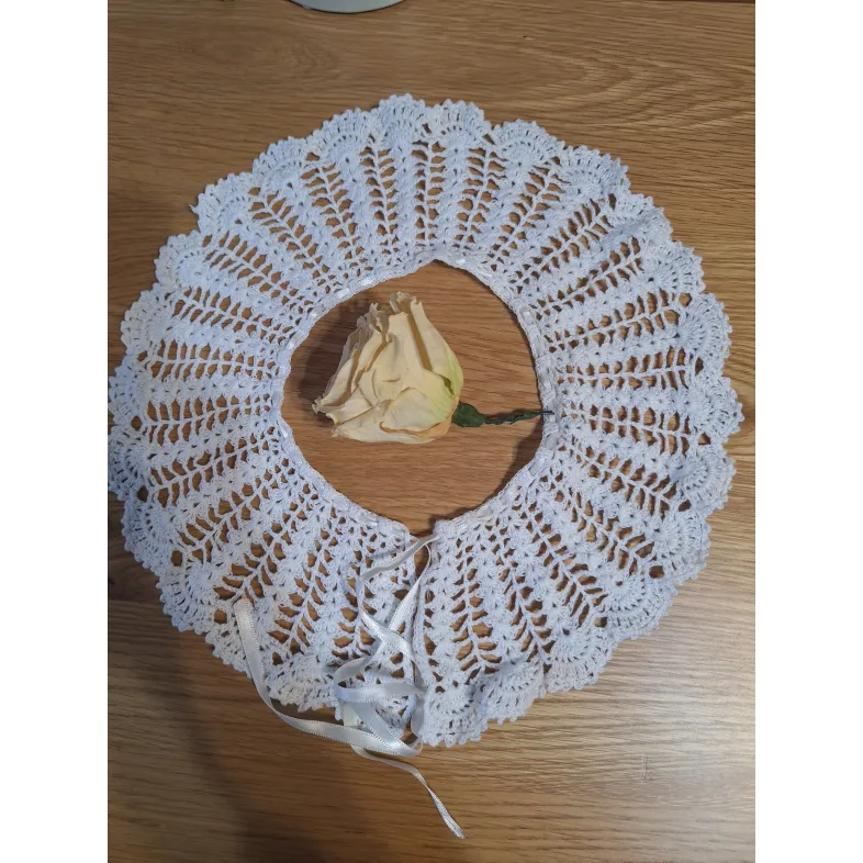 Guleras crosetat alb, din bumbac, cu inchidere pe fir de satin alb, 49 cm lungime, accesoriu ideal pt rochite, sau bluzițe!