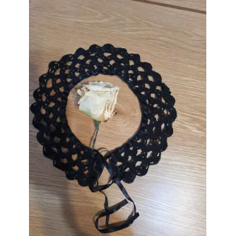 Guleras crosetat din bumbac fin , culoare negru , lungime 44 cm, inchidere cu fir satinat negru, ideal ca accesoriu pentru bluzite si rochițe!