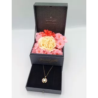 Un aranjament floral din flori de sapun, creat din flori de cires, hortensie si trandafiri, este o alegere eleganta pentru un cadou. Acest tip de aranjament nu doar ca ofera un aspect estetic placut, dar are si avantajul ca florile de sapun nu se ofilesc, putand fi pastrate pe termen lung. Aranjamentul este prezentat intr-o cutie de cadou sofisticata, care adauga un stop de lux fiecarei ocazii. In  interior veti descoperi un accesoriu elegant, perfect ales pentru a completa acest cadou. Perfect pentru aniversari, zile de nastere sau ca un gest de apreciere, acest aranjament floral este nu doar o bucurie pentru ochi, ci si un...