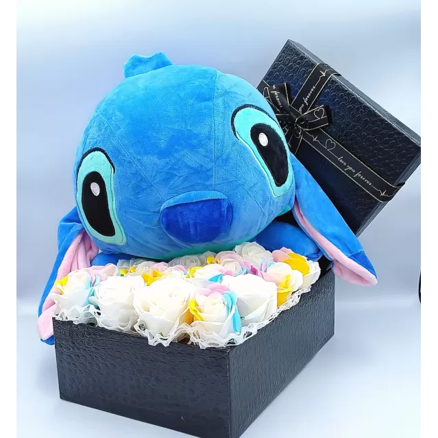 Un aranjament de trandafiri din sapun in culori pastelate , combinat cu un plus Stitch , poate fi o alegere originala si atractiva, ideala pentru cadouri sau decor. Aranjamentul va include trandafiri din sapunĀ in mai multe nuante : galben, albastru, alb si roz. Adaugarea unui plus Stitch ofera un element de joaca si distractie.