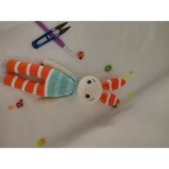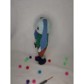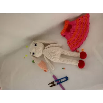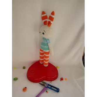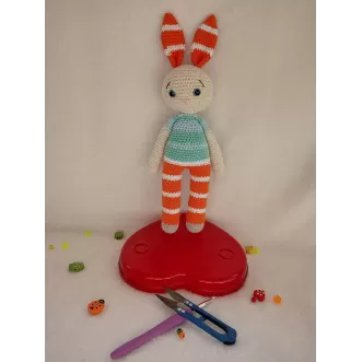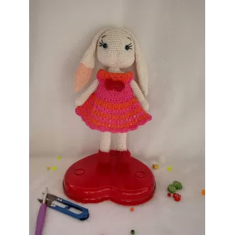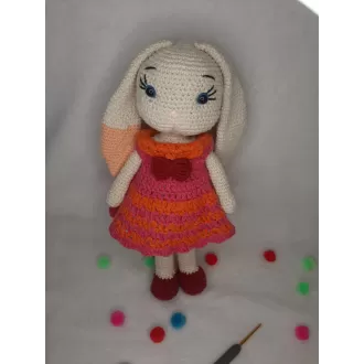 Acest adorabil iepuraș croșetat cu rochiță este companionul perfect pentru orice copil! Realizat manual din fire moi, iepurașul are urechi lungi .Fie că este folosit ca jucărie sau element decorativ, acest iepuraș va aduce bucurie și confort, devenind rapid un prieten de nădejde în aventurile celor mici. Ideal ca dar sau pentru a completa colecția de jucării!
