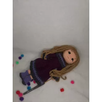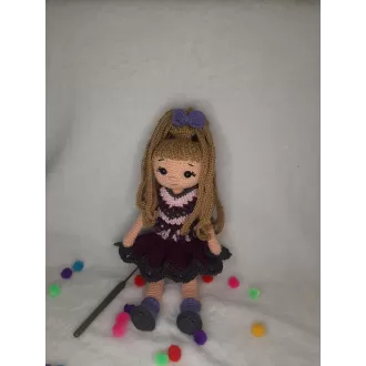 Păpușă croșetată din fire de acril și cristal,cu accesorii din mărgele de lemn Dimensiuni 11 cm înălțime