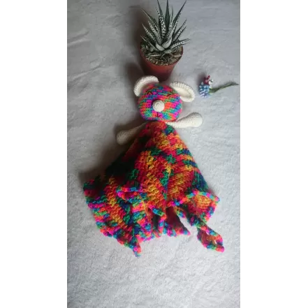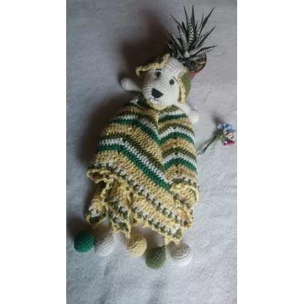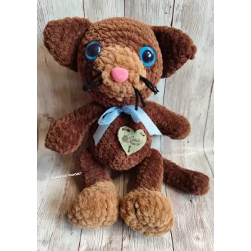 Jucarie de atasament ptr manute mici. Catel crosetat cu corp ,o jucarie handmade, realizata din fire moi de catifea , umpluta cu material hipoalergenic. Are un design adorabil, cu detalii cusute manual, ochi cu siguranta . Este o jucarie sigura pentru copii, placuta la atingere si ideala pentru imbratisari sau joaca. Perfecta  pentru bebelusul tau sau pentru un cadou special !