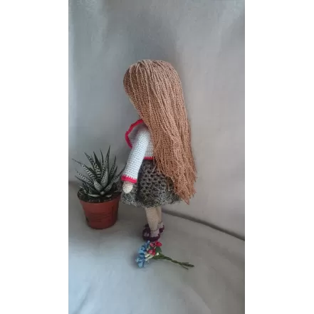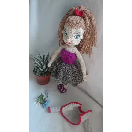Această păpușă croșetată este un companion adorabil, cu haine detașabile care permit celor mici să-și exprime creativitatea. Realizată manual din fire moi, păpușa are un zâmbet prietenos și trăsături delicate. Hainele colorate și variate, de la rochii la costume amuzante, pot fi ușor schimbate, oferind ore întregi de joacă imaginativă. Perfectă pentru a dezvolta abilitățile motorii și stilul personal al copiilor!