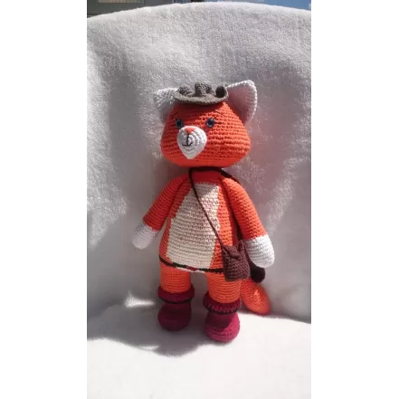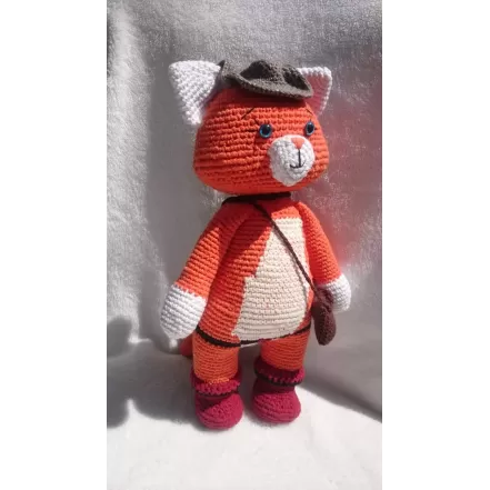 Jucăria Motanul Încălțat croșetat este o păpușă adorabilă, realizată din lână sau fire acrilice, ce aduce la viață celebrul personaj din basme. Cu un corp moale și potrivit pentru îmbrățișat, motanul are ochi mari și jucăuși, urechi ascuțite și botib cu detalii delicate. Este îmbrăcat în cizme dintr-un material diferit, iar accesoriile sale, precum o mantie sau o pălărie croșetată, îi accentuează farmecul şi personalitatea. Ideal ca ornament sau cadou, această jucărie strigă povești de aventură și magie!
