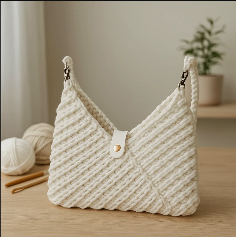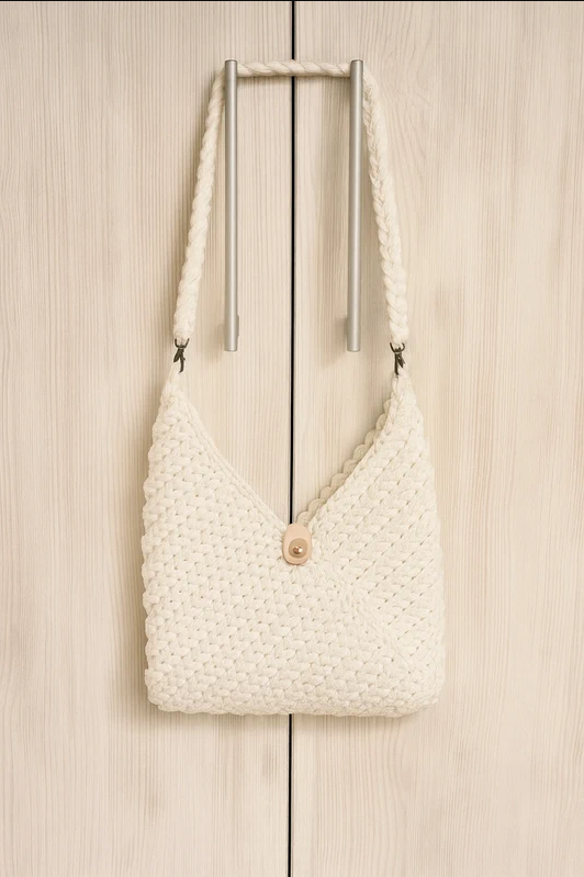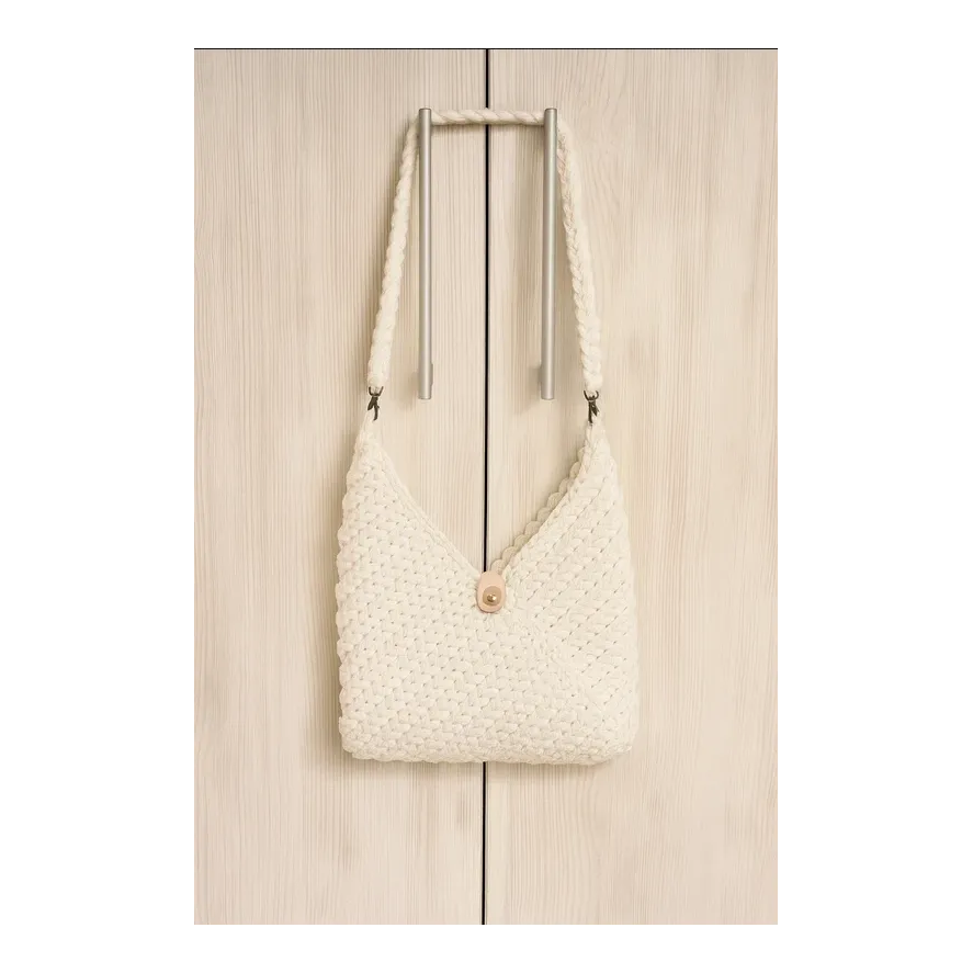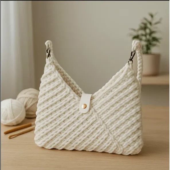Geantă albă croșetată manual