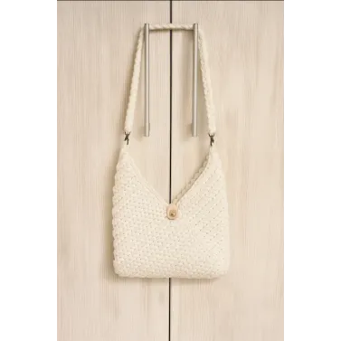 Această geantă croșetată manual din fir tip macrame este un accesoriu elegant și versatil, perfect pentru orice ocazie. Realizată cu grijă și atenție la detalii, oferă un look unic, potrivit atât pentru ținutele casual, cât și pentru cele boho-chic.