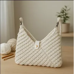 Geantă croșetată din fir tip macrame – handmade și personalizabilă Această geantă croșetată manual din fir tip macrame este un accesoriu elegant și versatil, perfect pentru orice ocazie. Realizată cu grijă și atenție la detalii, oferă un look unic, potrivit atât pentru ținutele casual, cât și pentru cele boho-chic. Detalii produs: ✅ Material: Fir tip macrame, rezistent și durabil ✅ Dimensiuni: Înălțime: 20 cm Lățime: 30 cm ✅ Culoare: Personalizabilă, în funcție de preferințe și stoc disponibil ✅ Întreținere: Se poate curăța manual, chimic sau automat (program delicat la 30°C) Alege o geantă...
