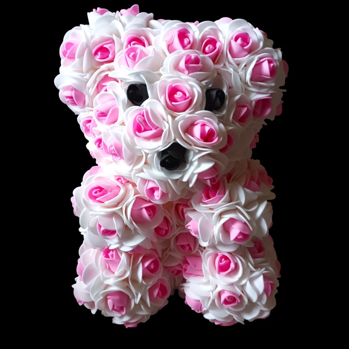 Atunci cand ai ramas fara inspiratie, acest ursulet din flori catifelate de spuma este cea mai potrivita alegere.