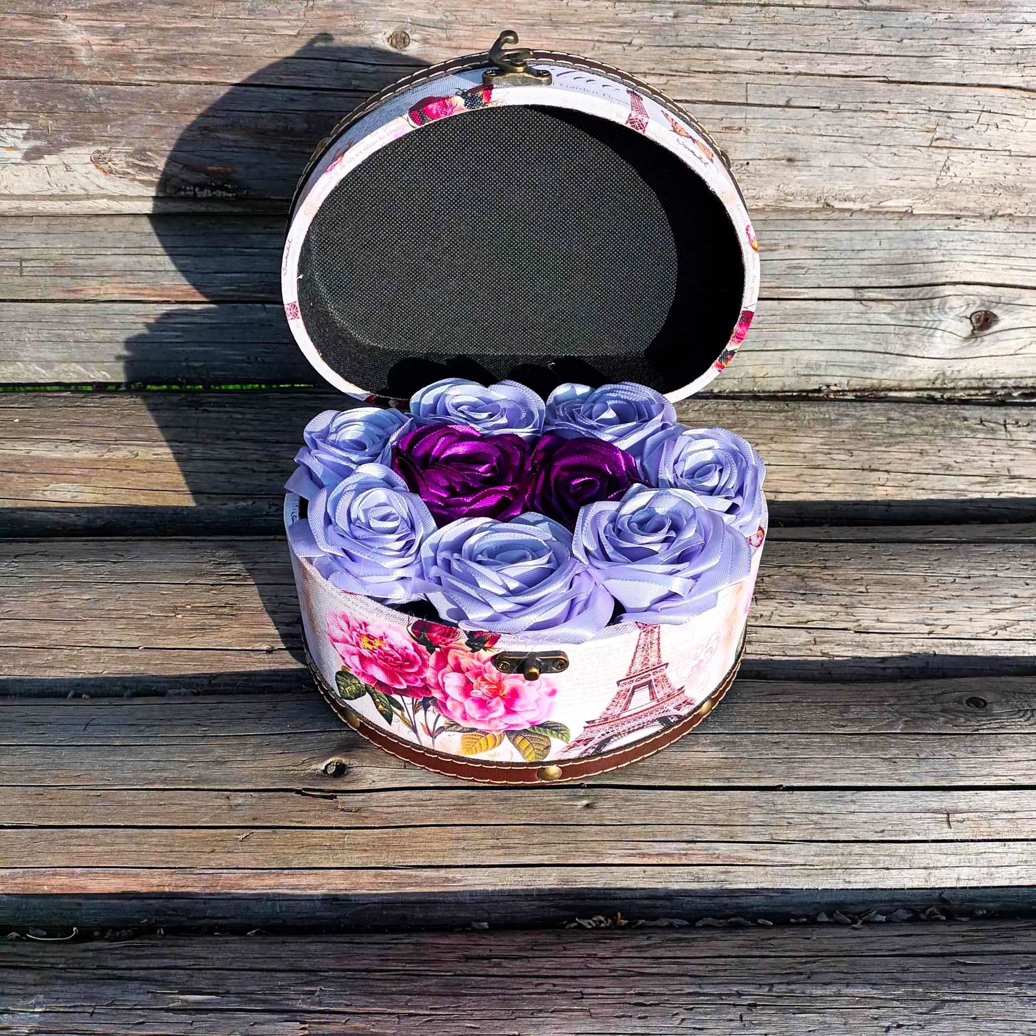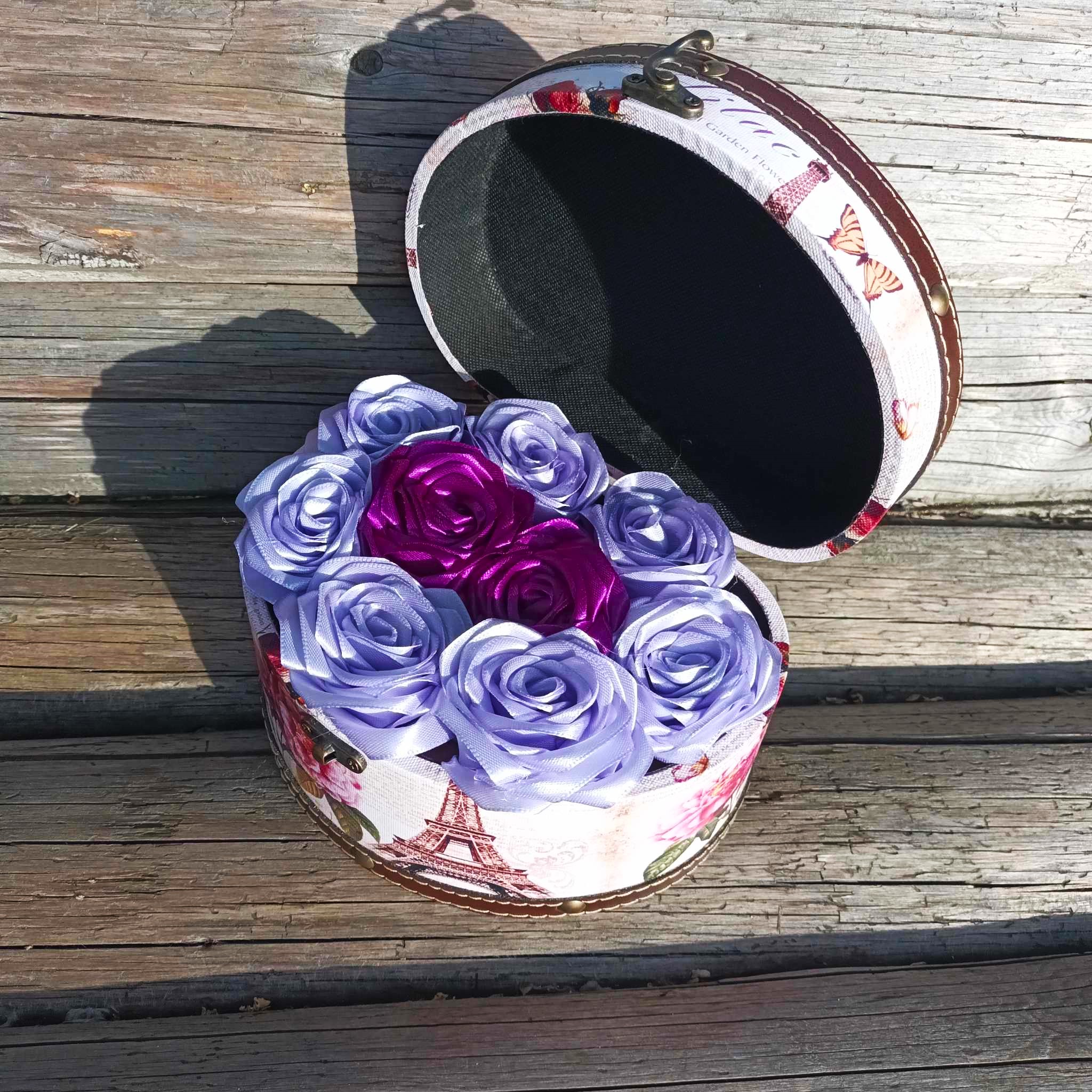 Ofera cuiva acest cufar cu trandafiri din satin si bucurati-va impreuna de putin parfum si multa culoare!