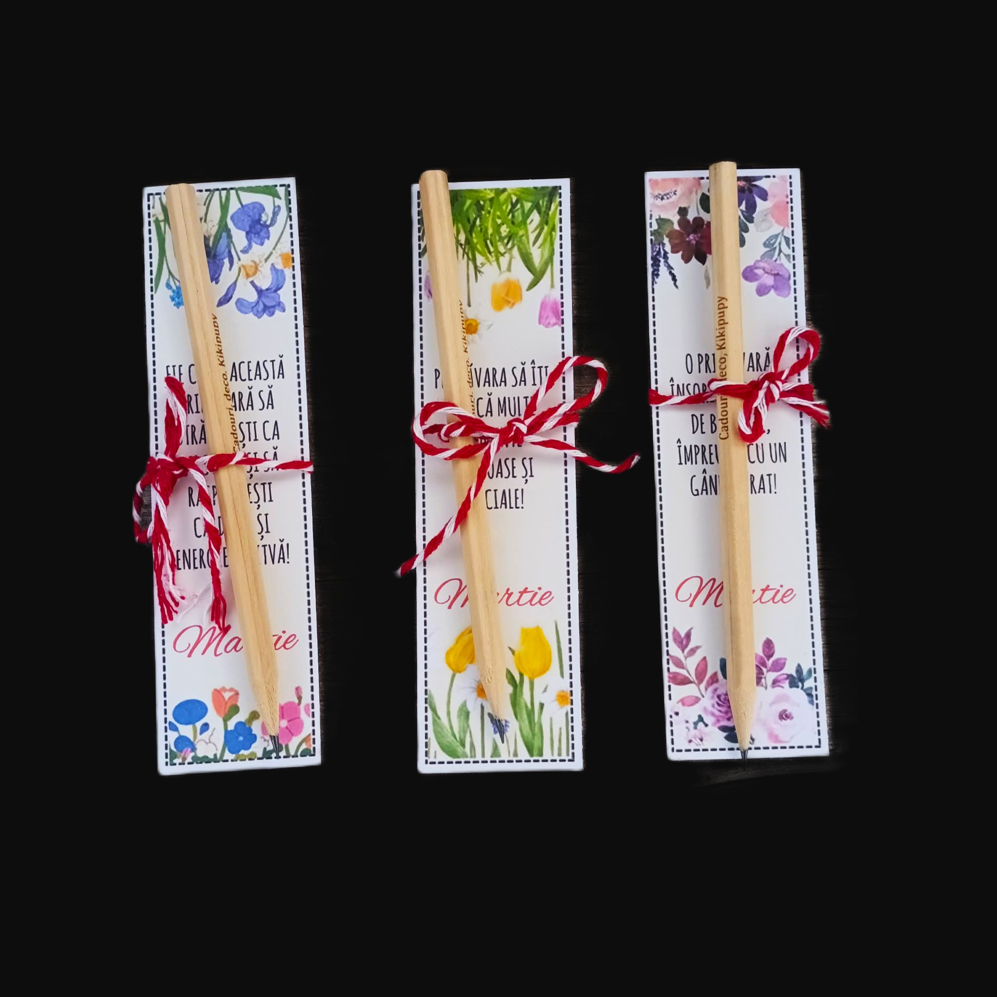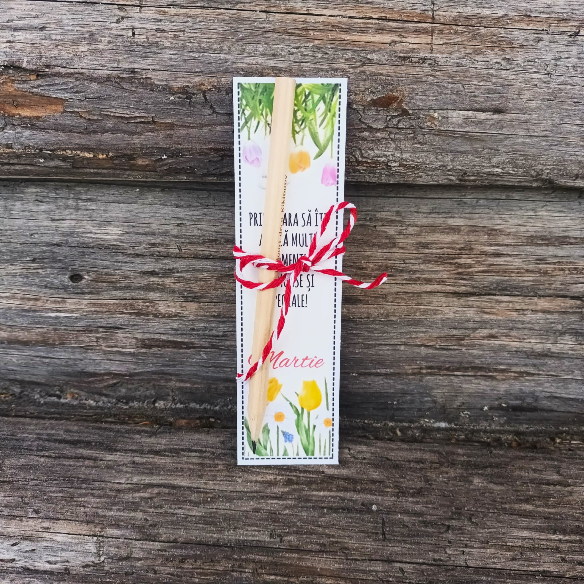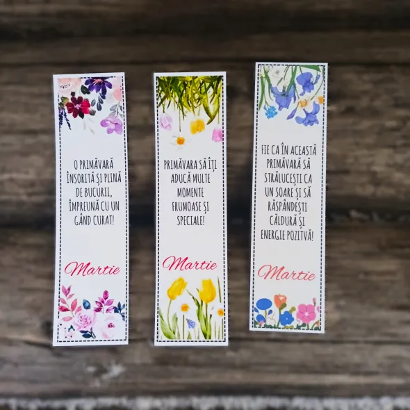 Setul este format din 3 semne de carte din carton de 230gr, fiecare continand diverse mesaje de primavara si un creion inscriptionat.