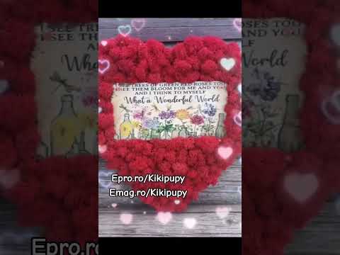 Decoratiunea este lucrata manual pe un suport din panza, in forma de inima cu licheni stabilizati, in centru avand un suport din lemn frumos decorat cu flori si inscriptionat cu celebrele versuri ale cantecului ”What a Wonderful World”, interpretat de Loius Amstrong: