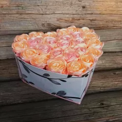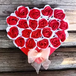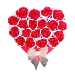 Aranjament floral realizat din flori din satin (alcatuite petala cu petala) usor parfumate, intr-o cutie rosie cu suport ce permite asezarea lui si vertical si orizontal Trandafirul rosu este un simbol clasic al afectiunii si devotamentului. In plus, trandafirii rosii pot reprezenta puritatea si frumusetea, respectul si admiratia. Trandafirii rosii sunt, de asemenea, asociati cu eleganta. Ei reprezinta rafinamentul, sofisticarea si gratia. Creat cu multa migala si atentie la detalii, accesorizat cu elemente decorative de calitate, aranjamentul floral este ideal pentru orice ocazie. Ofera un cadou unic si inspirat, o amintire...