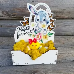 Aranjamentul este realizat intr-o cutiuta de lemn, gravata cu un iepuras simpatic si urarea ”Paste fericit!”, avand in centru un puisor printre oua multicolore. iar lichenii naturali stabilizati ce il inconjoara, vor aduce un plus de natura oricarui spatiu. Ofera un cadou unic, special si de efect! Mai jos gasiti informatii despre licheni si cum se pastreaza ei. Veti primi instructiuni de ingrijire si in format tiparit impreuna cu aranjamentul. Beneficiile decoratiunilor cu licheni: Indicator al umiditatii din atmosfera Reduc mucegaiul si umiditatea excesiva Curata si purifica aerul Reduc zgomotul Nu necesita udare si...
