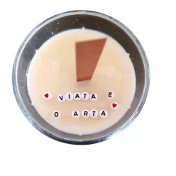 Fiecare lumanare este realizata in totalitate manual, din  ceara naturala de soia  si ulei parfumat de  cocos si lemn de santal  in stare pura, fara alte adaosuri. Turnate in boluri de sticla, avand fitil de lemn ce va ajuta la o ardere curata si uniforma daca se vor respecta indicatiile de mai jos,  fiecare lumanare contine un mesaj surpriza  ce va incanta ziua persoanei care o va primi (  ”Esti minunata!”, ”Te iubesc!” si ”Viata e o arta!” ). fiecare vine ambalata intr-un frumos saculet organza. Lumanare cantareste 540 grame, timpul minim de ardere pentru fiecare fiind de minim 50 ore. Lasati o nota cu mesajul dorit, in...