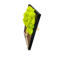 Decoratiune realizata manual pe o rama din lemn, cu cerb din ceramica turnat si pictat manual si licheni stabilizati de culoare verde. Aceasta decoratiune se poate pune pe orice suprafata plana sau pe perete. Nu mai sta pe ganduri! Adu o oaza de natura in casa ta! Mai jos veti gasi mai multe detalii despre licheni si motivele pentru care nu ar trebui sa lipseasca din nici o casa. Deasemenea, veti primi instructiunile de ingrijire si in format tiparit impreuna cu tabloul. Beneficiile decoratiunilor cu licheni: Indicator al umiditatii din atmosfera Reduc mucegaiul si umiditatea excesiva Curata si purifica aerul...