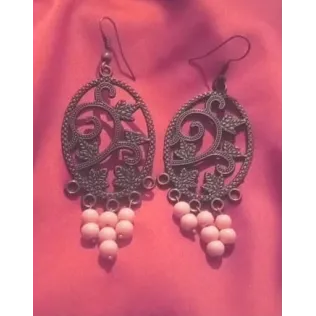 Cercei cu margele roz Model de prindere cu tortita Culoare cadru brun