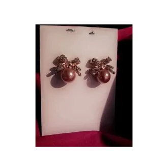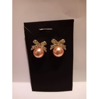 Cercei cu fundita Sistem inchidere surub  Pietre decorative si Perla Roze