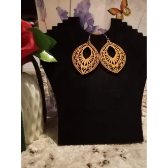 Cercei lemn perforat Culoare maro spre portocaliu Sistem prindere cu tortita  Model unicat