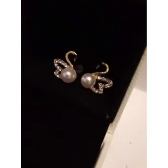 Cercei model lebada  Perla si pietre decorative  Sistem de prindere cu surub