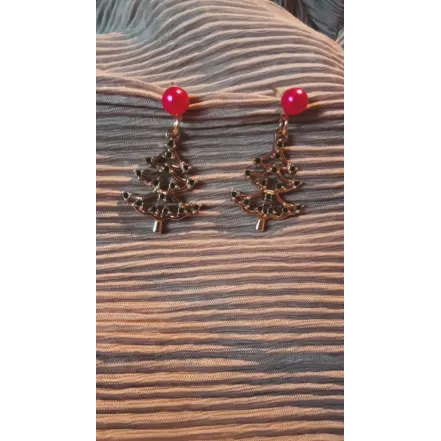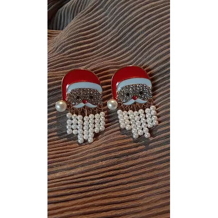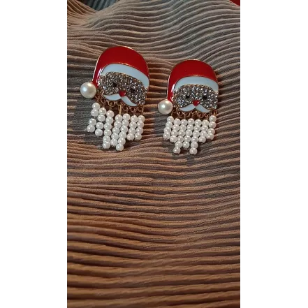 Cercei Mos Craciun Pietre decorative  Sistem inchidere surub  Margele albe