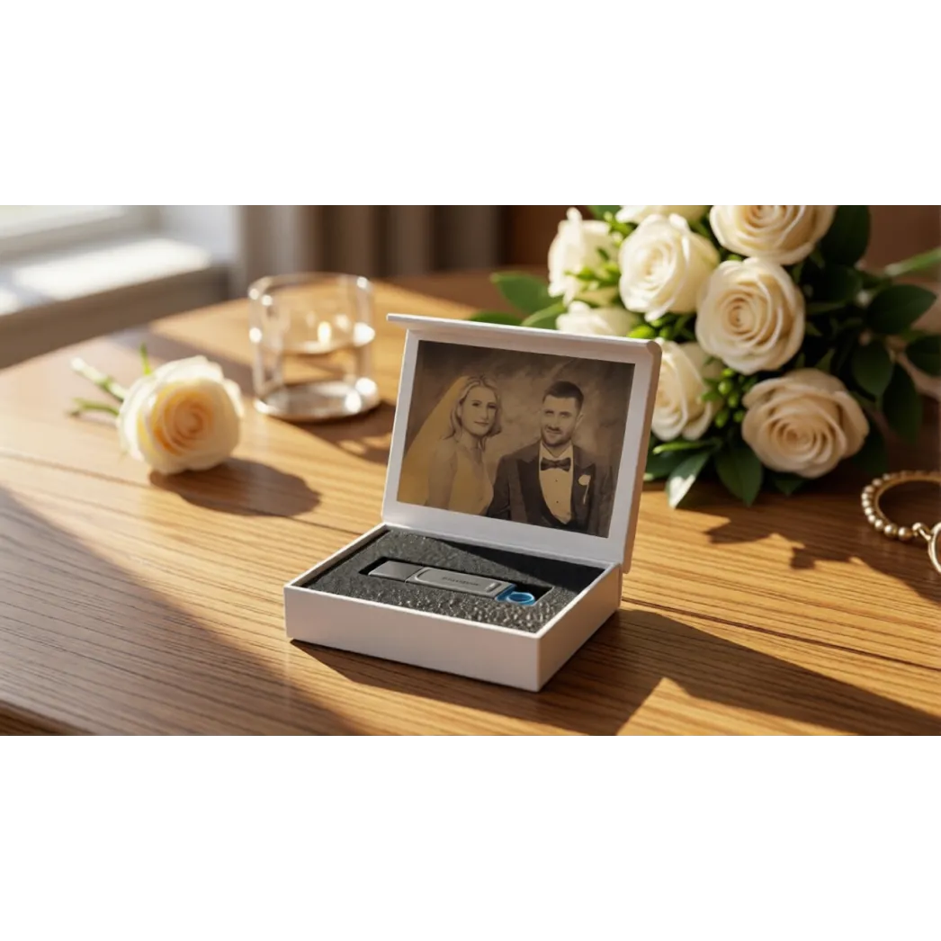 Cutie personalizata pentru depozitarea stickurilor USB, pentru evenimente familiale (botez, nunta), sau corporate.