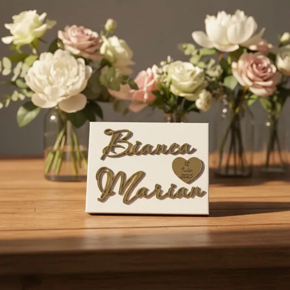 Pentru personalizare, va rugam transmiteti datele (prenume mireasa/mire/increstinat, data eveniment), completand campul "Personalizeaza produsul" de mai sus.