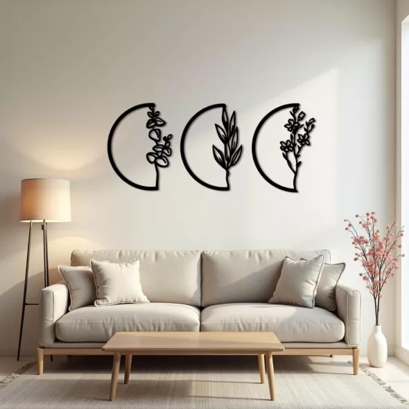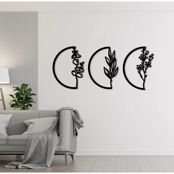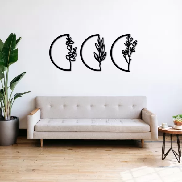 Aceste trei piese artistice semicirculare, fiecare având un design de plante, aduc un farmec modern și natural în orice spațiu. Fiecare design botanic adaugă un element decorativ subtil, transformând pereții într-o adevărată oază de eleganță și stil. Comandă-le pentru a aduce natura și rafinamentul în casa ta!