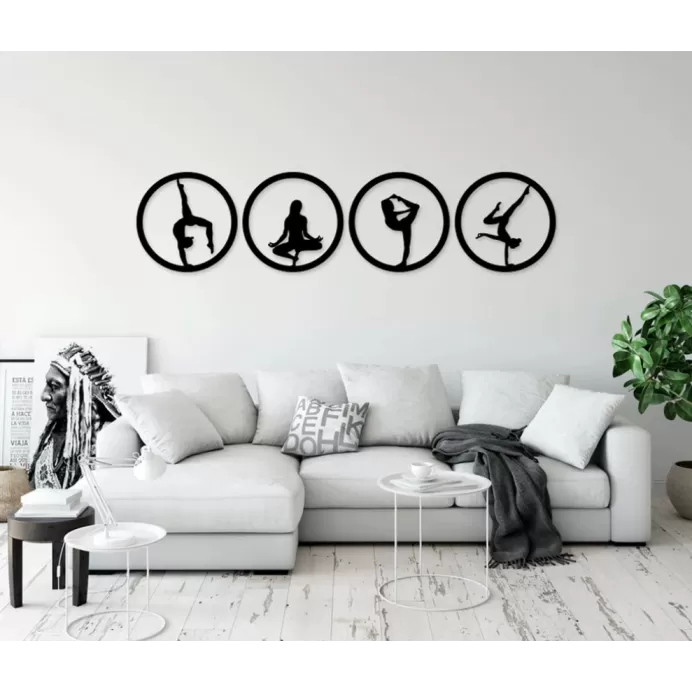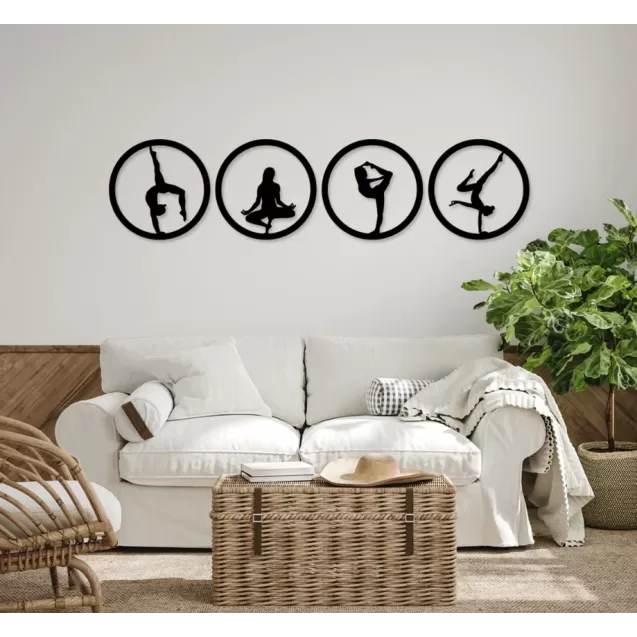 Înfrumusețează-ți spațiul cu acest triptic ce ilustrează grația și flexibilitatea umană, realizat prin decupaj laser din placaj de HDF de înaltă calitate. Setul include trei panouri circulare cu siluete elegante în diverse poziții de yoga și gimnastică: un handstand, o meditație așezată și o postură de echilibru pe un picior. Fiecare panou surprinde esența echilibrului, flexibilității și atenției, perfecte pentru a aduce un plus de inspirație și liniște în orice încăpere. Ideal pentru iubitorii de yoga, gimnastică și artă modernă, acest triptic adaugă o notă de eleganță și dinamism spațiului tău.