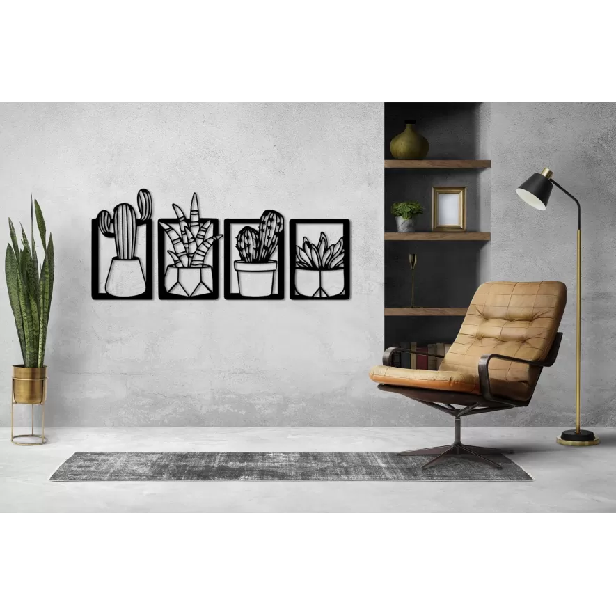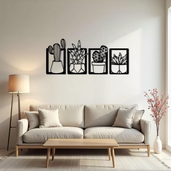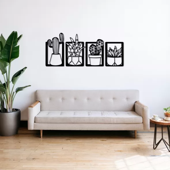 Transformă-ți spațiul de locuit cu această elegantă decorațiune de perete ce include patru rame cu designuri de cactuși și suculente. Realizată cu tehnologie de tăiere laser de precizie, această piesă de artă măsoară 134 cm lungime și 58 cm lățime, fiind ideală pentru a adăuga un strop de natură și sofisticare în orice cameră. Perfectă pentru sufragerii, dormitoare sau birouri, această decorațiune se integrează armonios în orice stil de design interior.