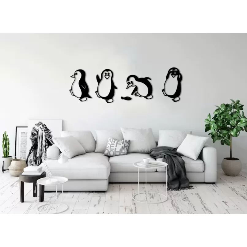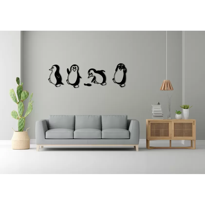 Adaugă un strop de joacă și eleganță casei tale cu această decorațiune de perete ilustrând patru pinguini în diverse ipostaze. Realizată cu tehnologie de tăiere laser de înaltă precizie, această piesă unică măsoară 180 cm în lungime și 58 cm în lățime. Descoperă combinația perfectă pentru stilul tău interior și adu bucurie și originalitate în orice cameră cu aceste adorabile siluete de pinguini.