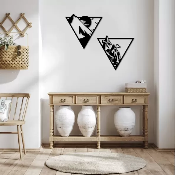 Inspiră-te din frumusețea naturii cu acest set de tablouri triunghiulare care surprind peisaje montane spectaculoase. Perfect pentru a crea o atmosferă relaxantă în orice spațiu. Dimensiunile setului sunt 85 cm x 105 cm, iar piesele sunt realizate din HDF de 3 mm, decupate cu precizie laser. Ideal pentru pasionații de munte și natură!