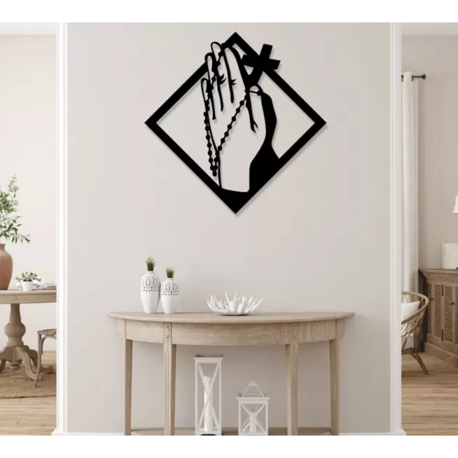 Adaugă o notă de spiritualitate și eleganță decorului tău cu acest panou artistic ce prezintă două mâini în poziție de rugăciune, ținând un rozariu cu o cruce, realizat prin decupaj laser din placaj de HDF de înaltă calitate. Fiecare detaliu este meticulos creat pentru a capta esența devotamentului și a credinței. Designul său rafinat și semnificativ face ca acest panou să fie ideal pentru orice spațiu de meditație, rugăciune sau decor interior. Perfect pentru a aduce un strop de liniște și introspecție în casa ta.