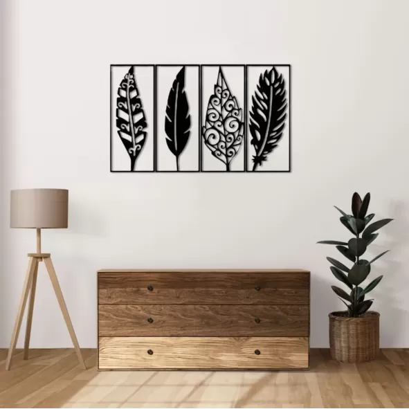 Adaugă un strop de eleganță și rafinament spațiului tău cu acest triptic artistic de pene delicate, realizat prin decupaj laser din placaj de HDF de înaltă calitate. Fiecare panou prezintă o pană unică, cu detalii fine și linii artistice, ce captează esența frumuseții naturale. Acest set de trei piese este perfect pentru a crea un punct focal impresionant într-o varietate de încăperi, de la living la birou. Designul său sofisticat și versatil face ca aceste panouri decorative să fie ideale pentru iubitorii de artă și natură.