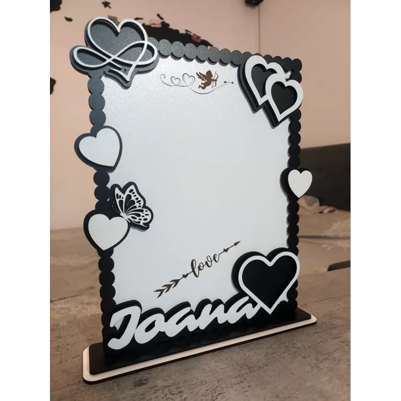 Surprinde frumusețea iubirii cu această ramă personalizabilă cu mesaj, perfectă pentru ai spune cât de mult o iubești și ce simți pentru ea. Cu detalii decorative precum inimioare și fluturi, și un mesaj emoționant din partea ta pentru ea, această ramă este un cadou de neuitat. Comandă acum și fa-o să se gândească zilnic la tine!