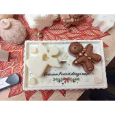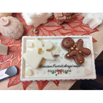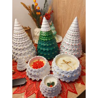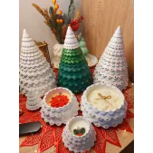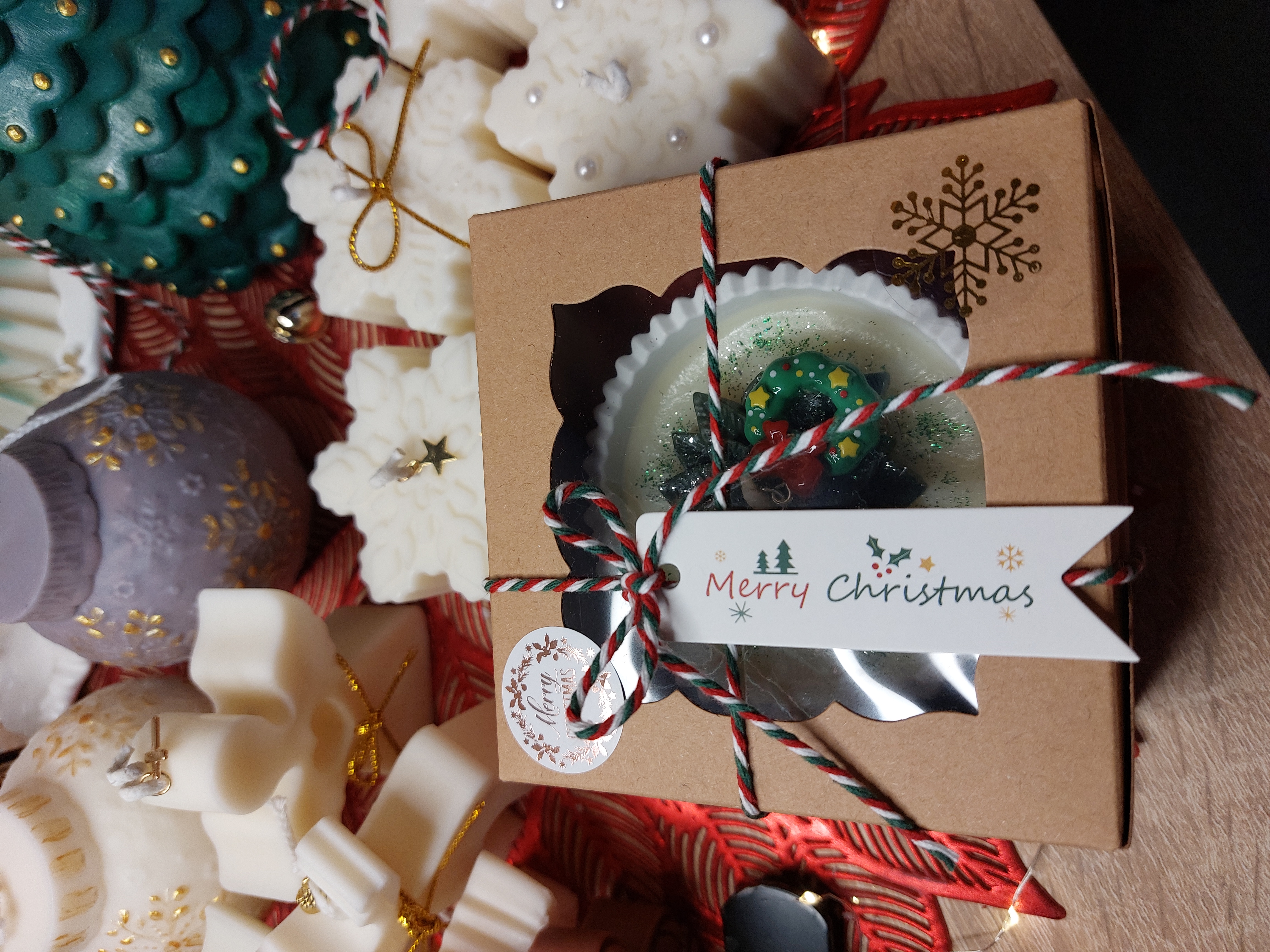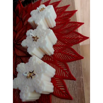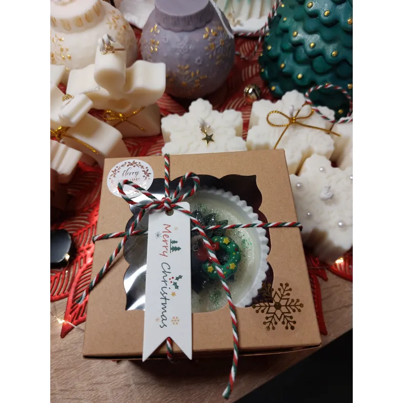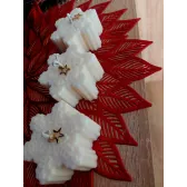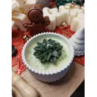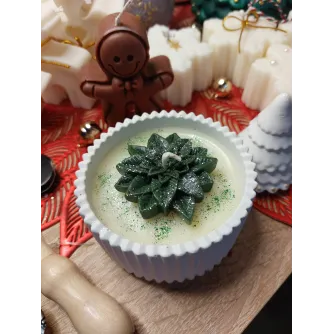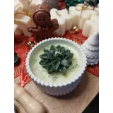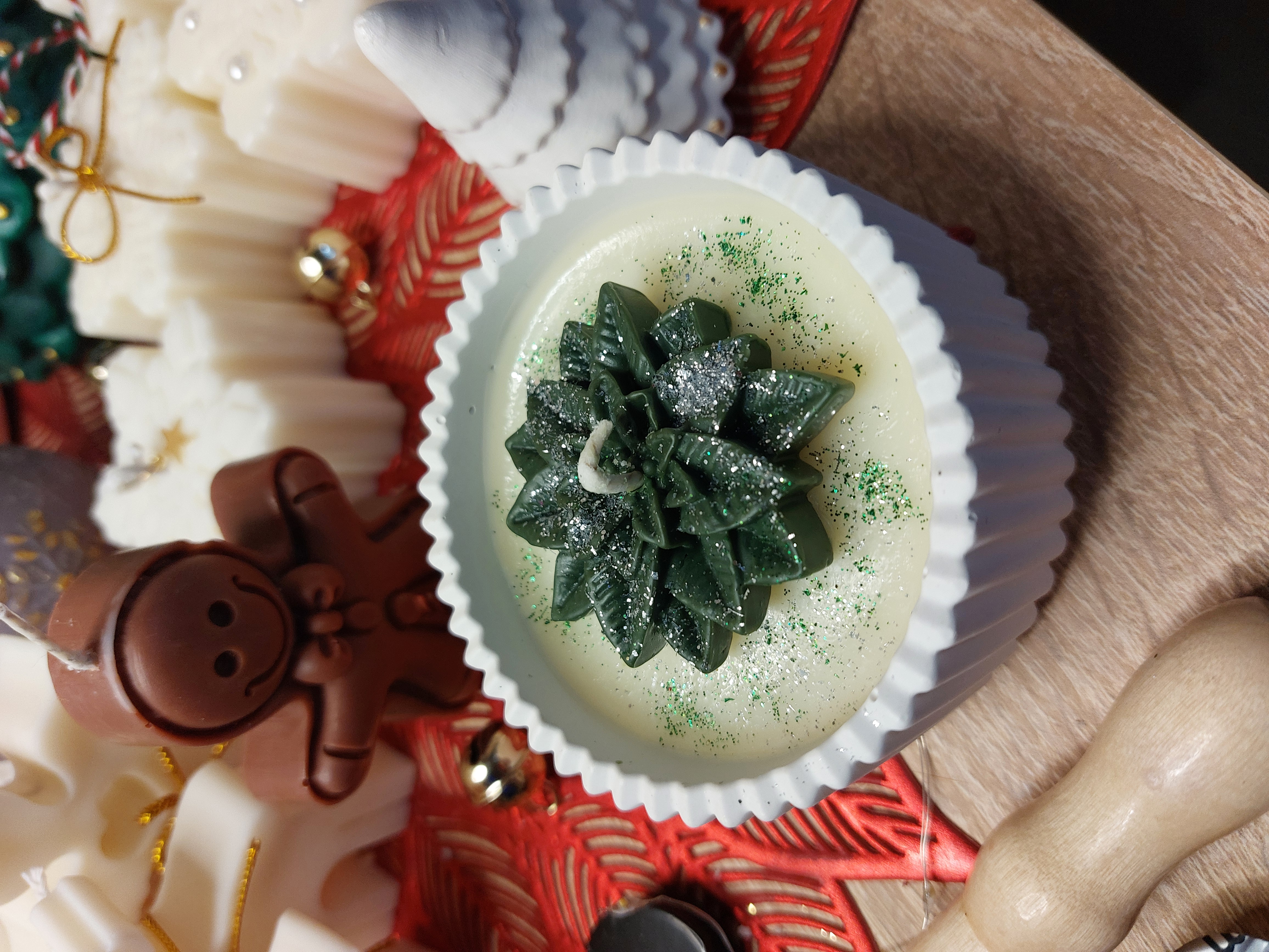 Lumânare din ceara de soia parfumata, decorată. Turnata în recipient din praf ceramic. Produs lucrat 100% manual. Personalizabil. Floarea(crăciunița) poate fi roșie de exemplu!