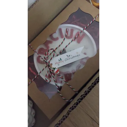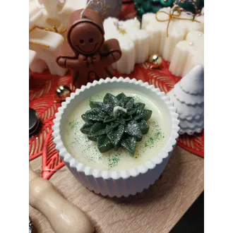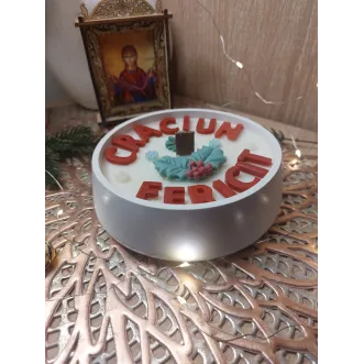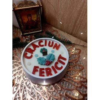 Lumânare din ceara de soia parfumată,cu decor specific de Crăciun. Turnată în recipient din praf ceramic. Totul este lucrat manual,personalizabil. Produsul vine ambalat ca în poză.