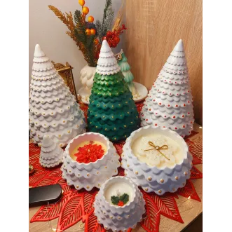 Un brad din praf ceramic care "ascunde" 3 lumânari parfumate! Un cadou deosebit pentru cei dragi tie,realizat 100% manual! Personalizabil dupa suflet!
