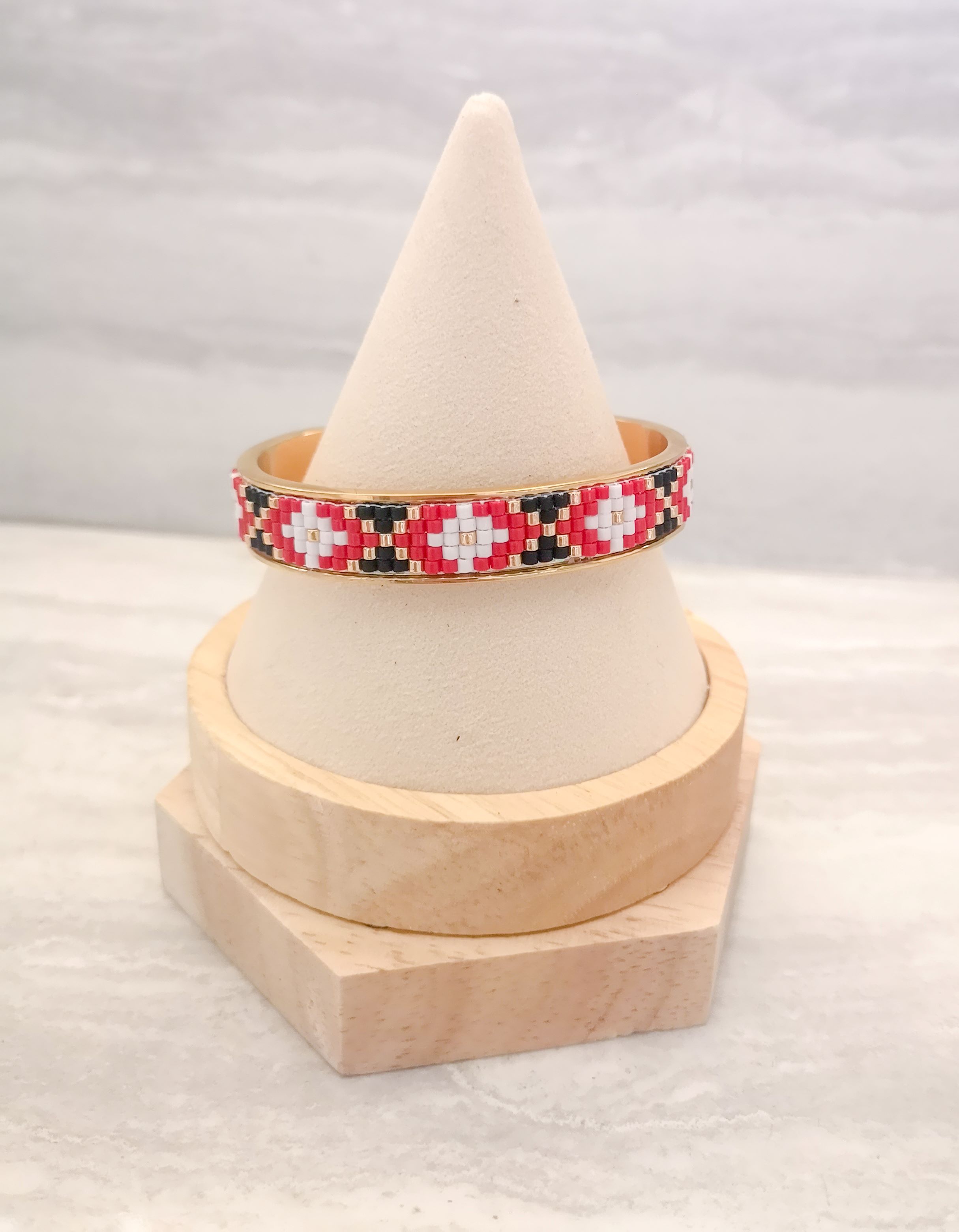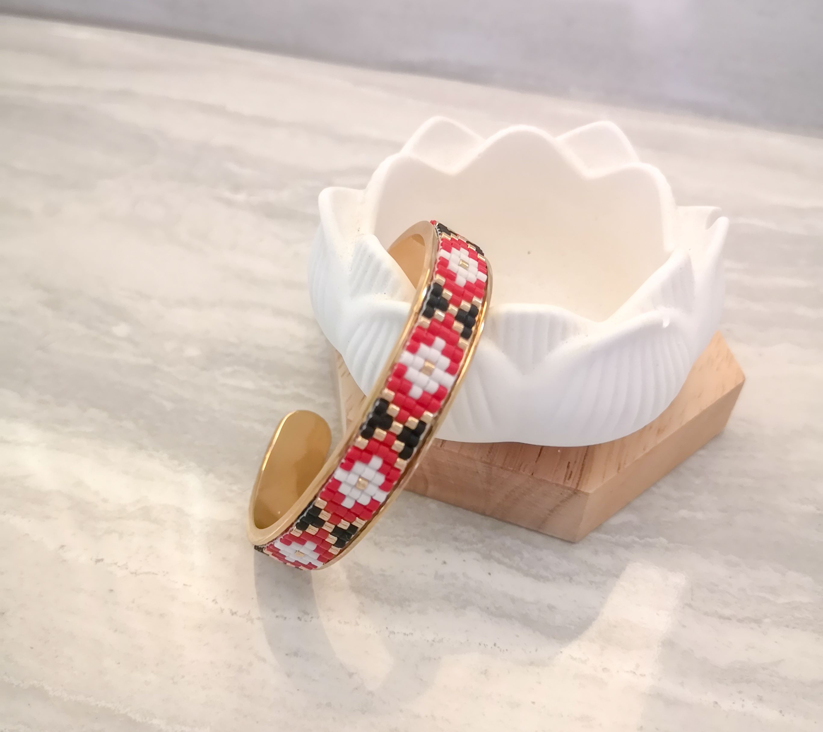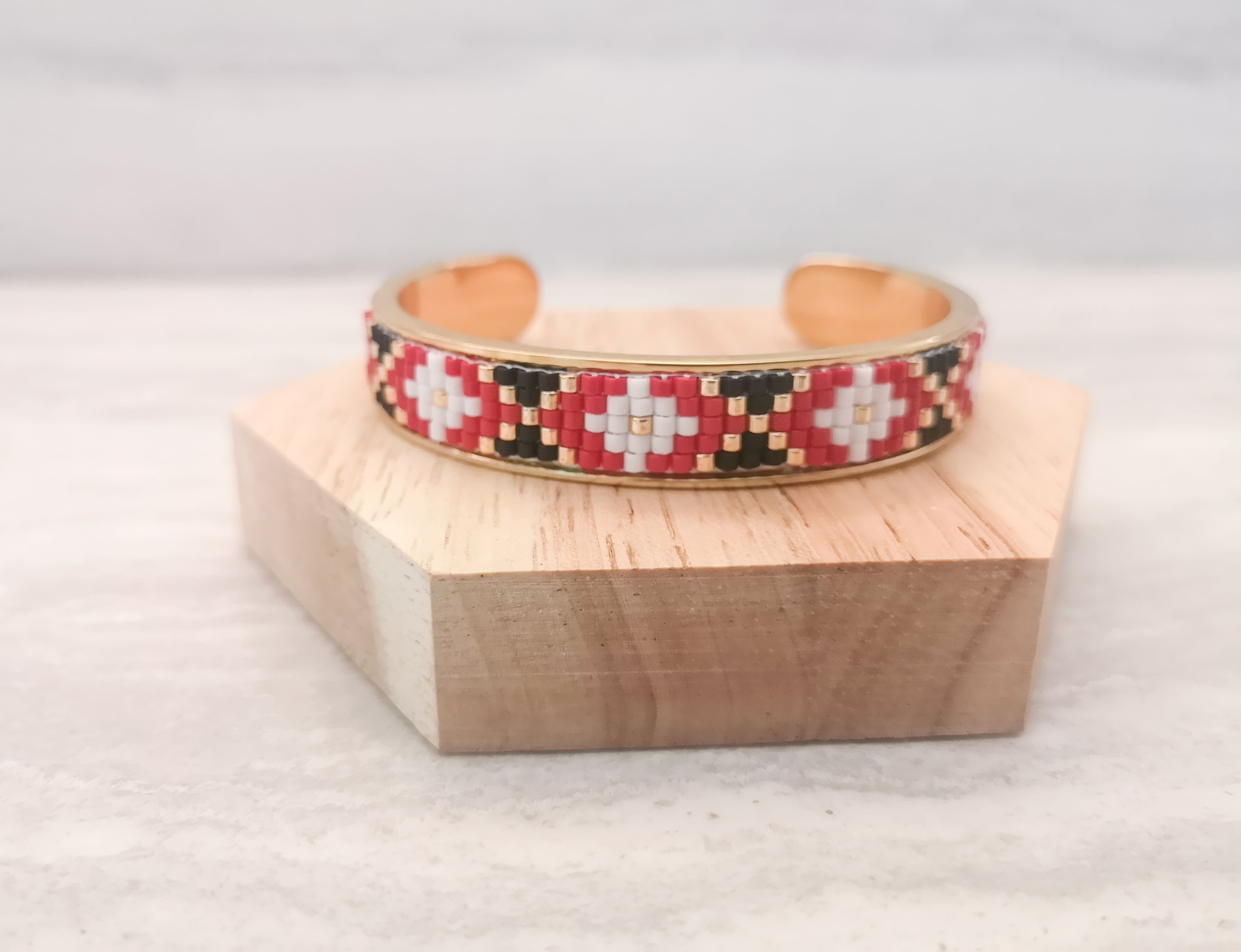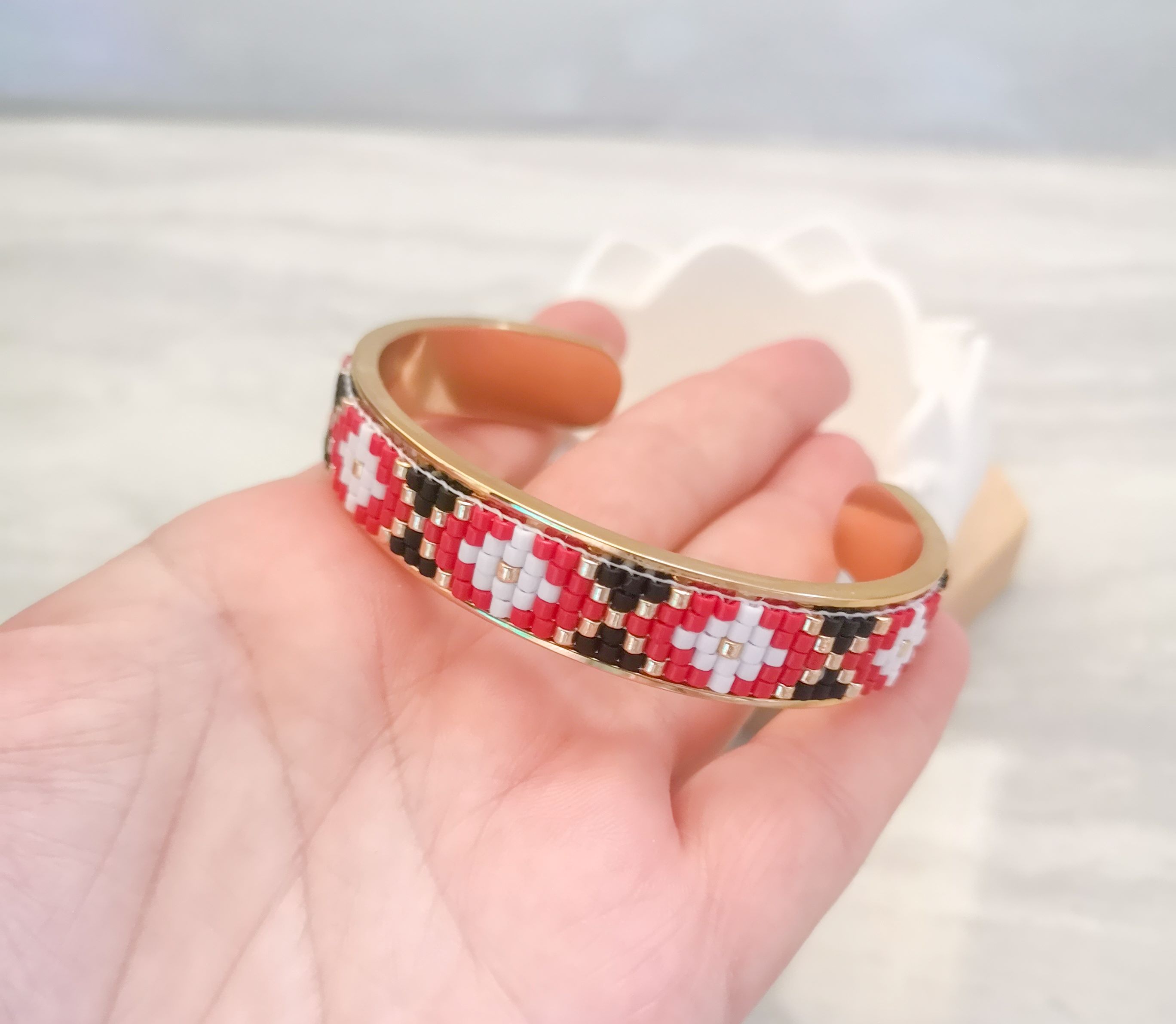 Bratara pe baza de alama aurita, tesuta cu margele japoneze originale