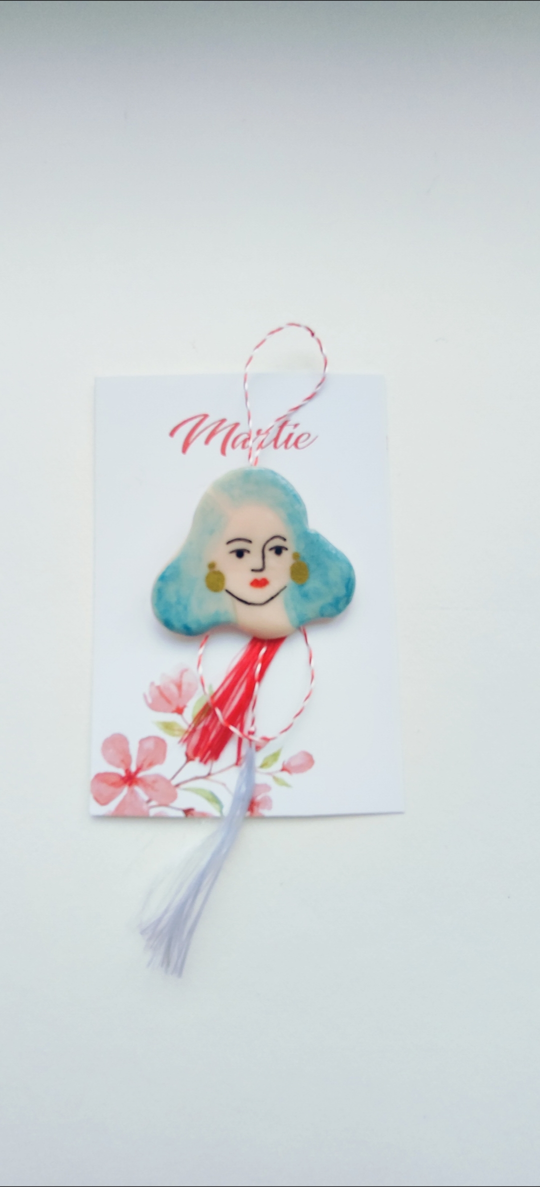 Mărțișor damă cu păr albastru
