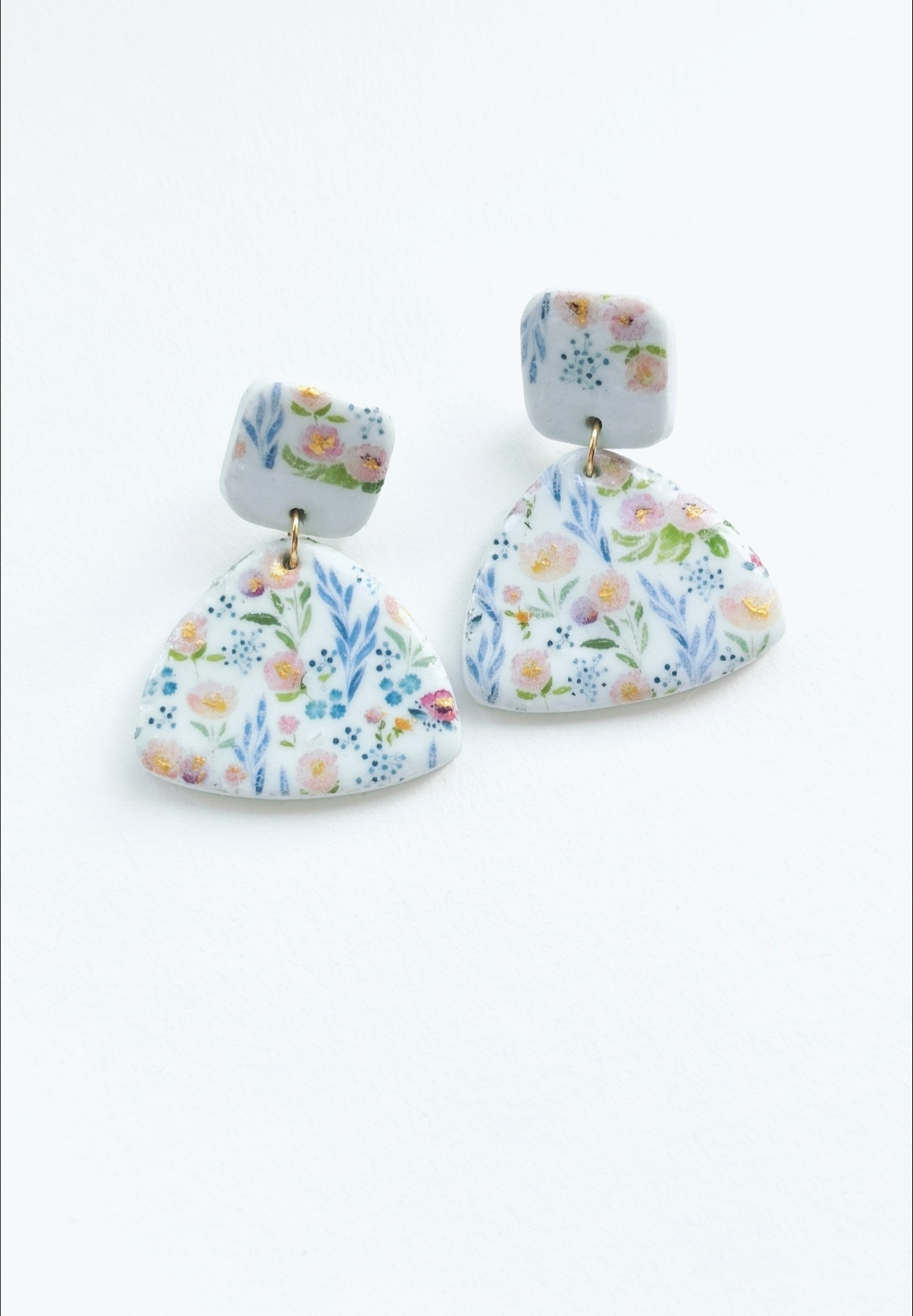 Cercei realizați manual din lut polimeric,lăcuiți cu rășina UV și accesorii metalice din oțel inoxidabil