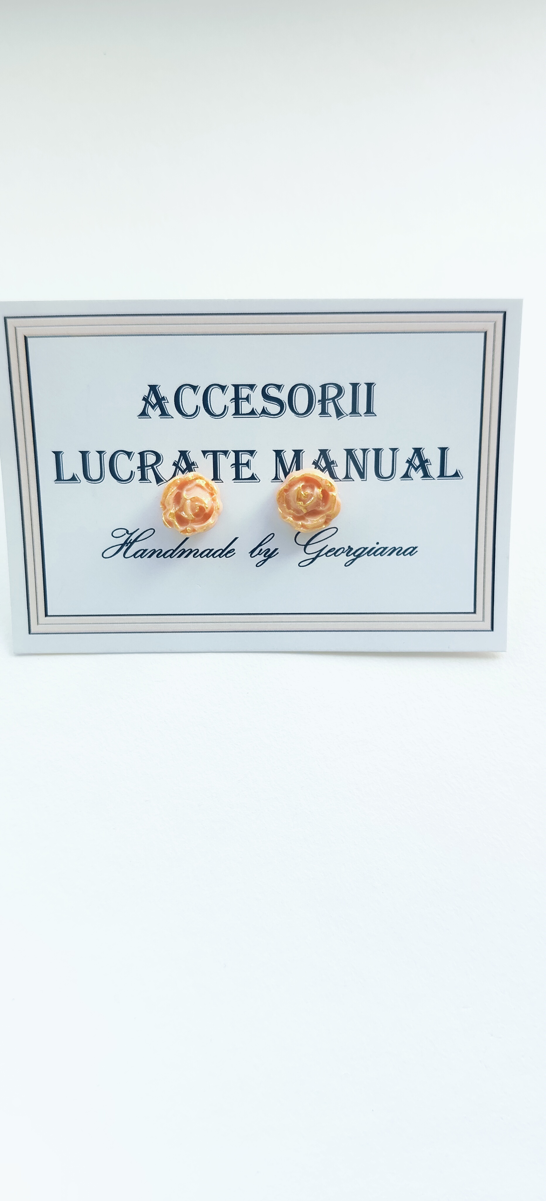 Cercei realizați manual din lut polimeric, lăcuiți cu rășina UV și cu accesorii metalice din oțel inoxidabil.