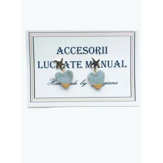 Cercei realizați manual din lut polimeric, lăcuiți cu rășina UV și cu accesorii metalice din oțel inoxidabil.