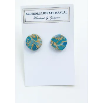Cercei realizați manual din lut polimeric,lăcuiți cu rășina UV și accesorii metalice din oțel inoxidabil
