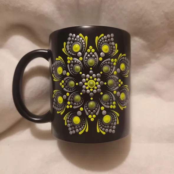 Cana termosensibila 350ml pictat  de mana cu vopsea de porcelan, verde.