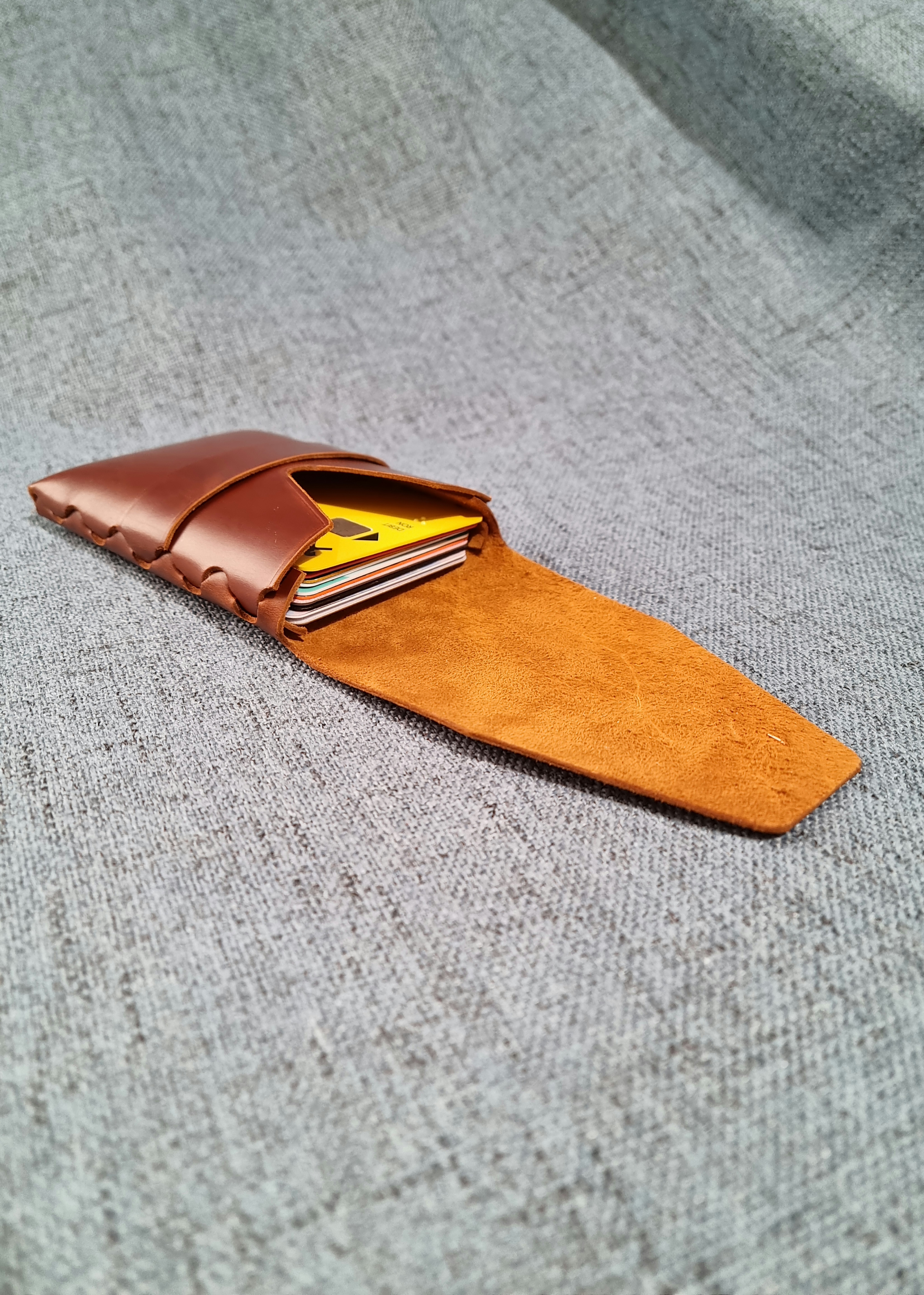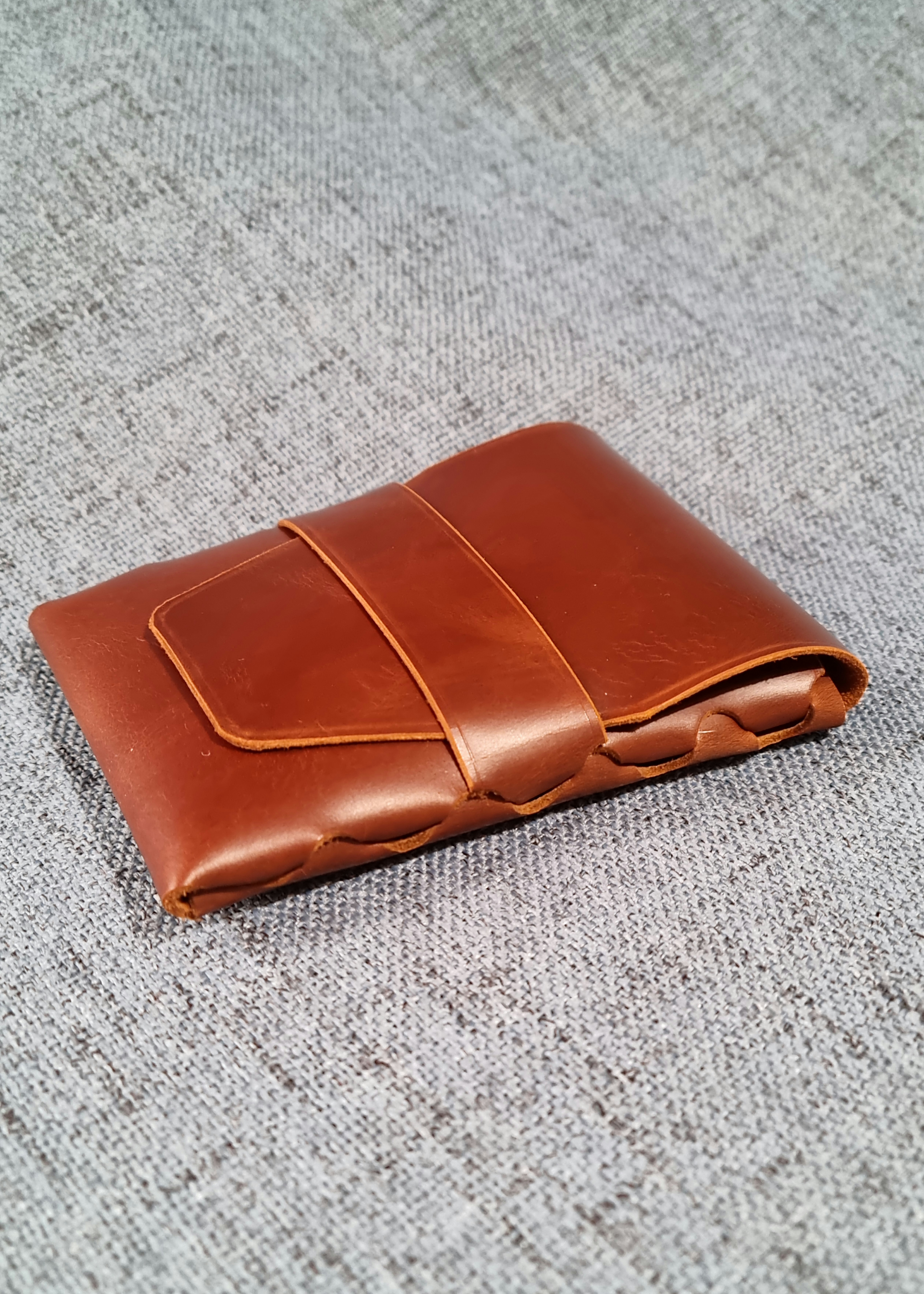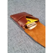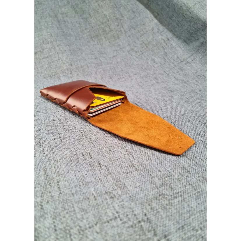 Este prevăzut cu un compartiment principal pentru carduri și bancnote pliate, securizat cu o clapetă din piele ce menține conținutul în siguranță. Cusăturile și marginile atent lucrate îi oferă durabilitate și un aspect premium, iar dimensiunea redusă îl face perfect pentru utilizarea zilnică.