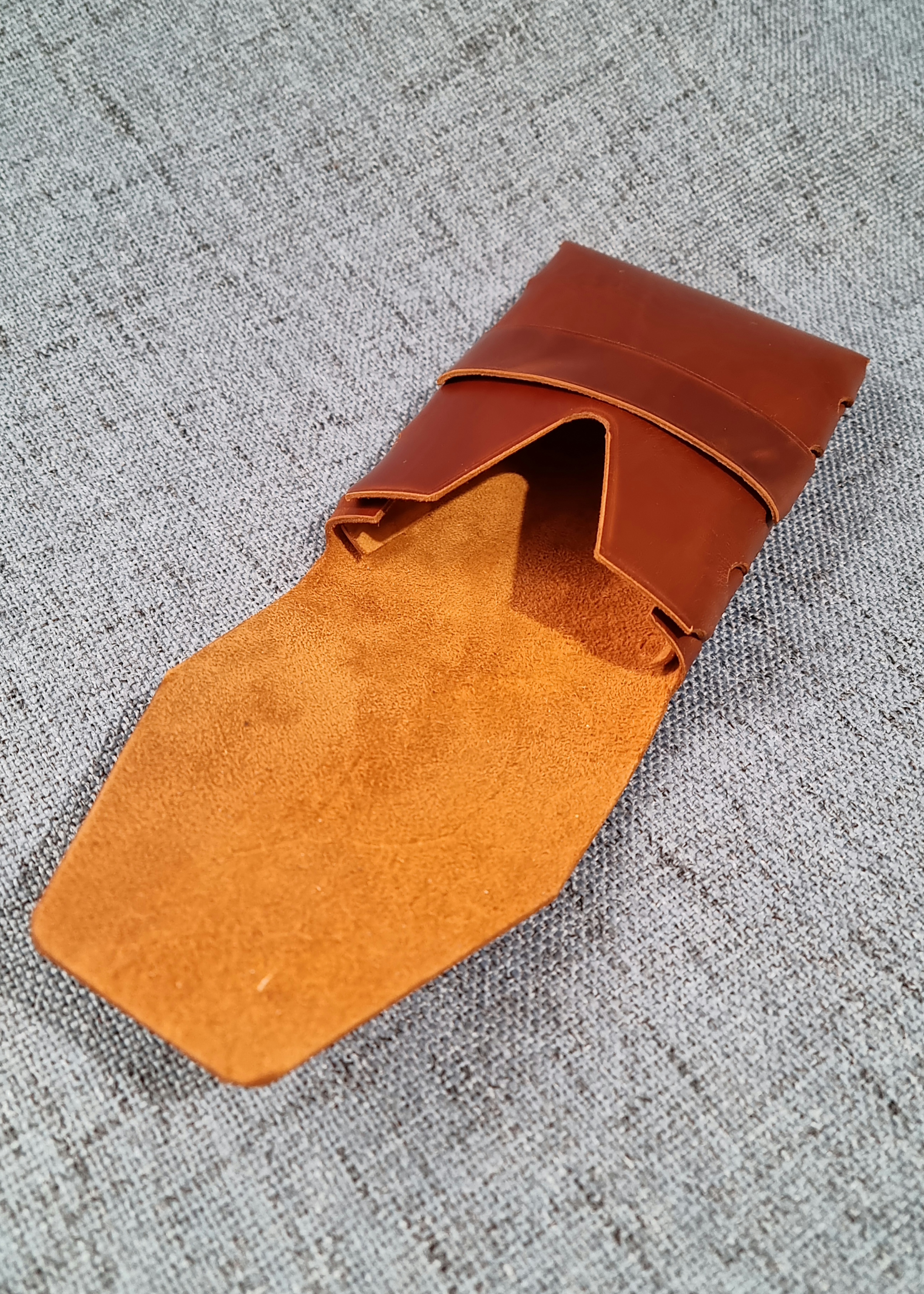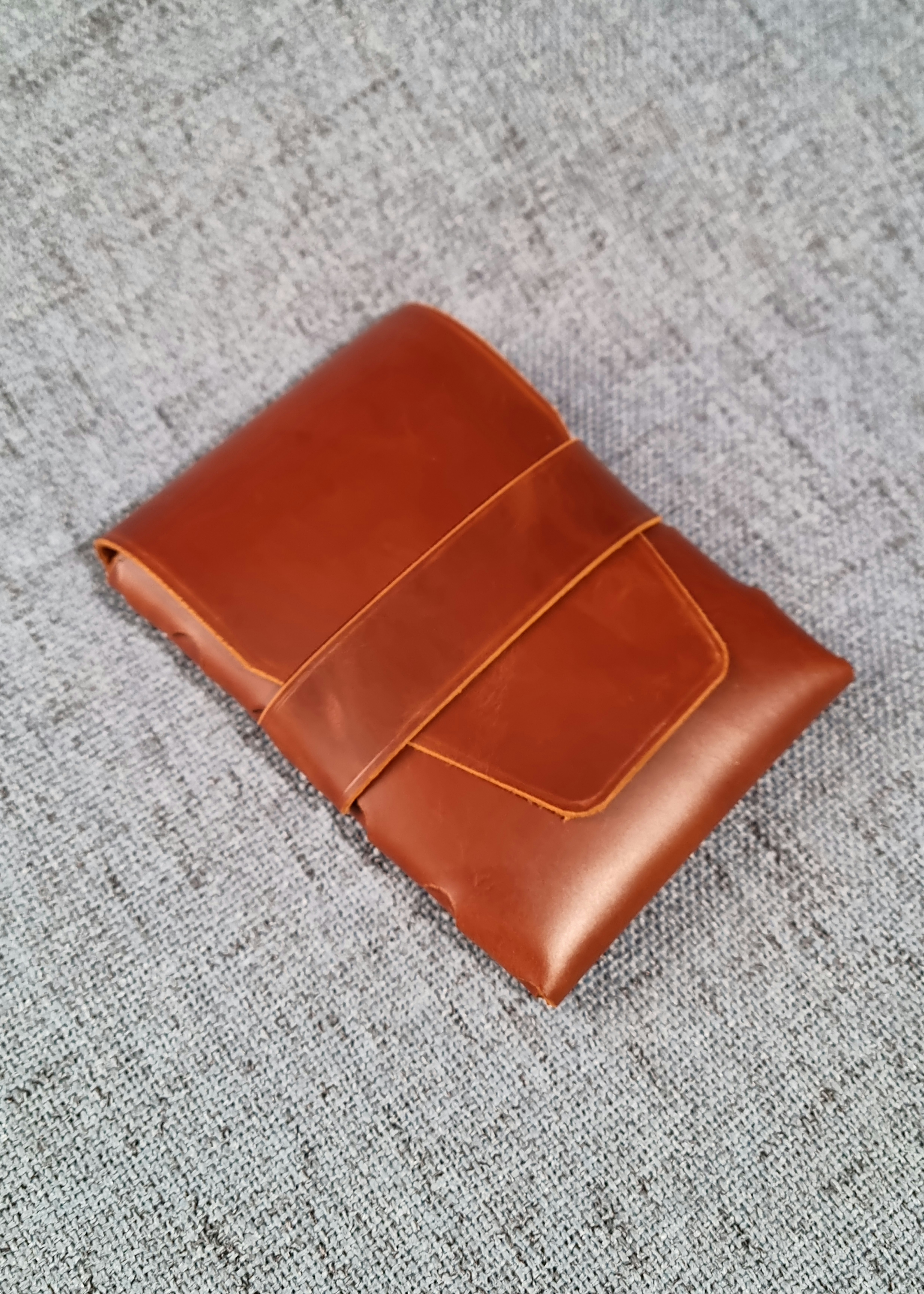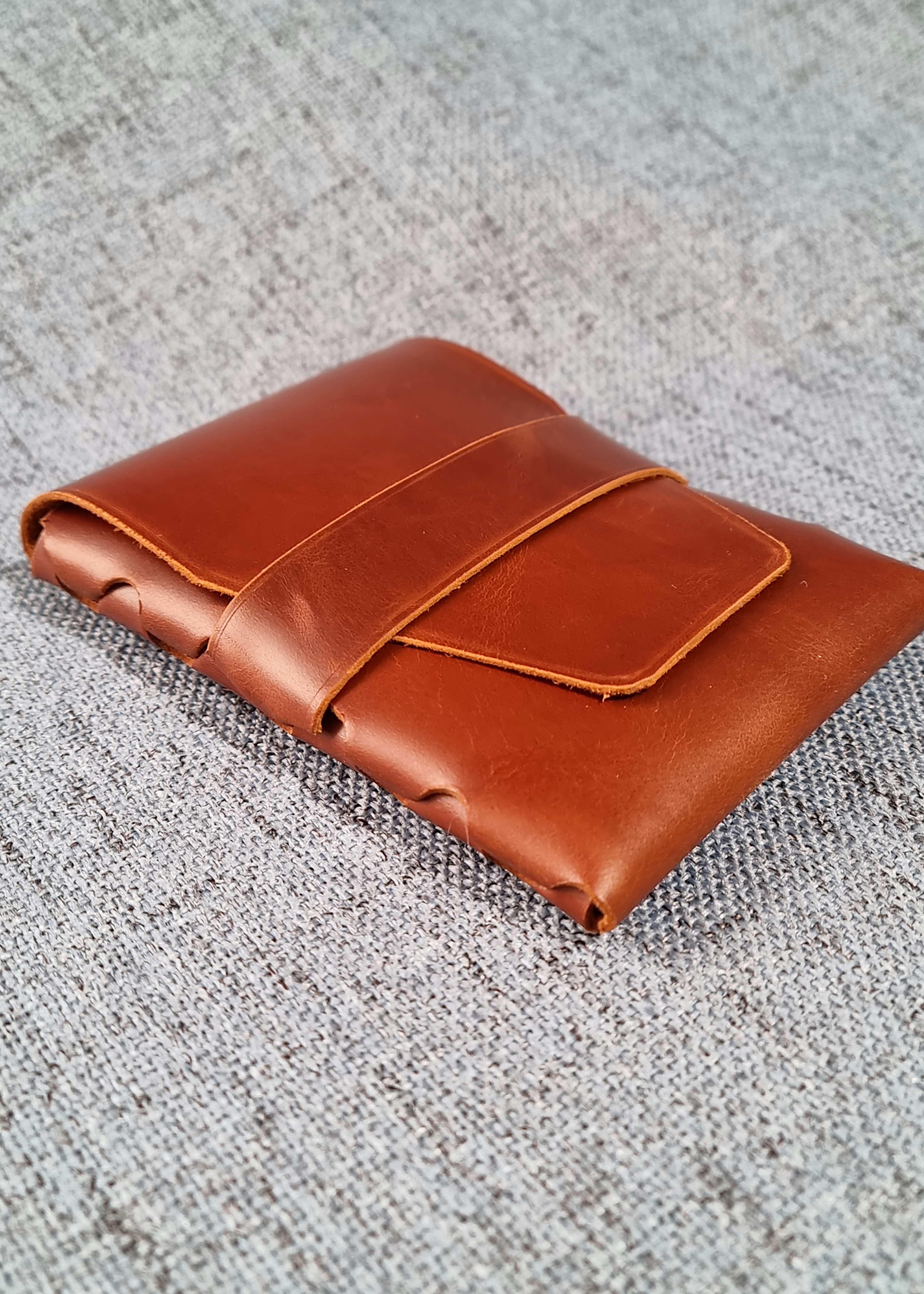 Este prevăzut cu un compartiment principal pentru carduri și bancnote pliate, securizat cu o clapetă din piele ce menține conținutul în siguranță. Cusăturile și marginile atent lucrate îi oferă durabilitate și un aspect premium, iar dimensiunea redusă îl face perfect pentru utilizarea zilnică.