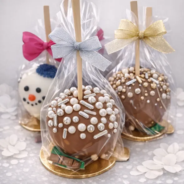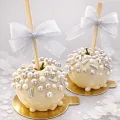 Mar proaspat glazurat cu ciocolata alba si decorat cu bilute comestibile argintii