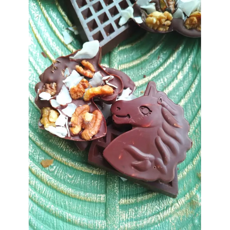 Tableta din ciocolata cu lapte/ neagra / alba + chipsuri de cocos si miez de nuca crocant