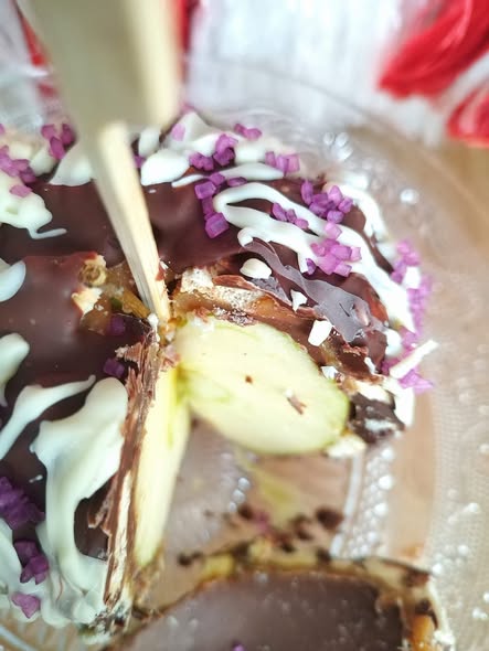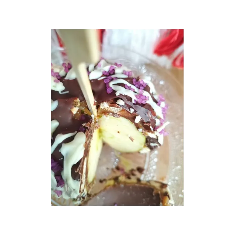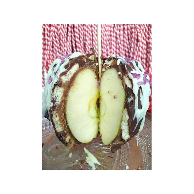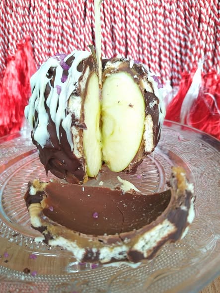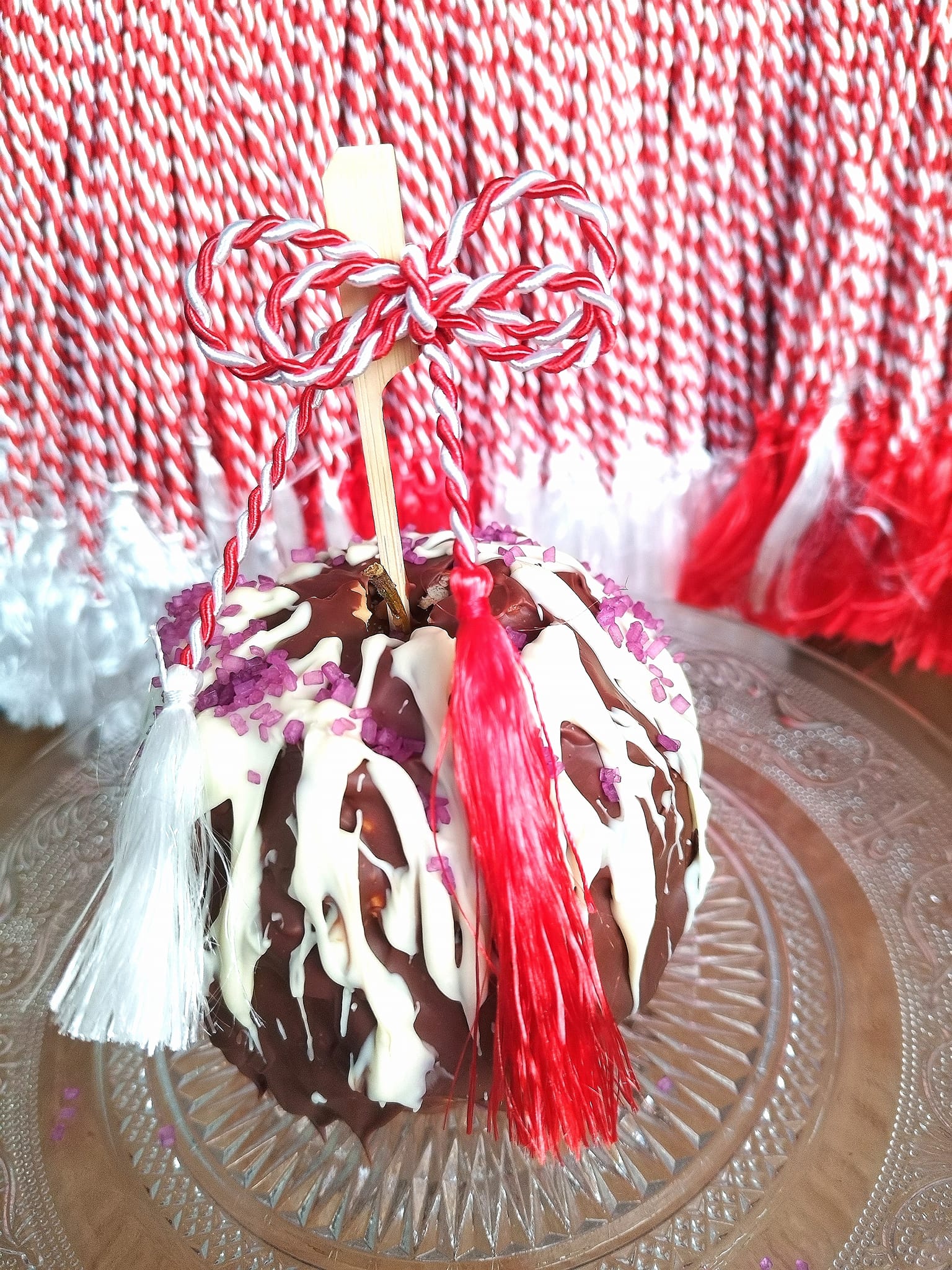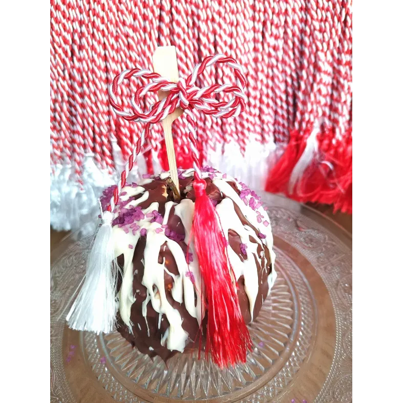 Mar glazurat cu 3 straturi: ciocolata + caramel + ciocolata. Fir de martisor elegant si gros la alegere.
